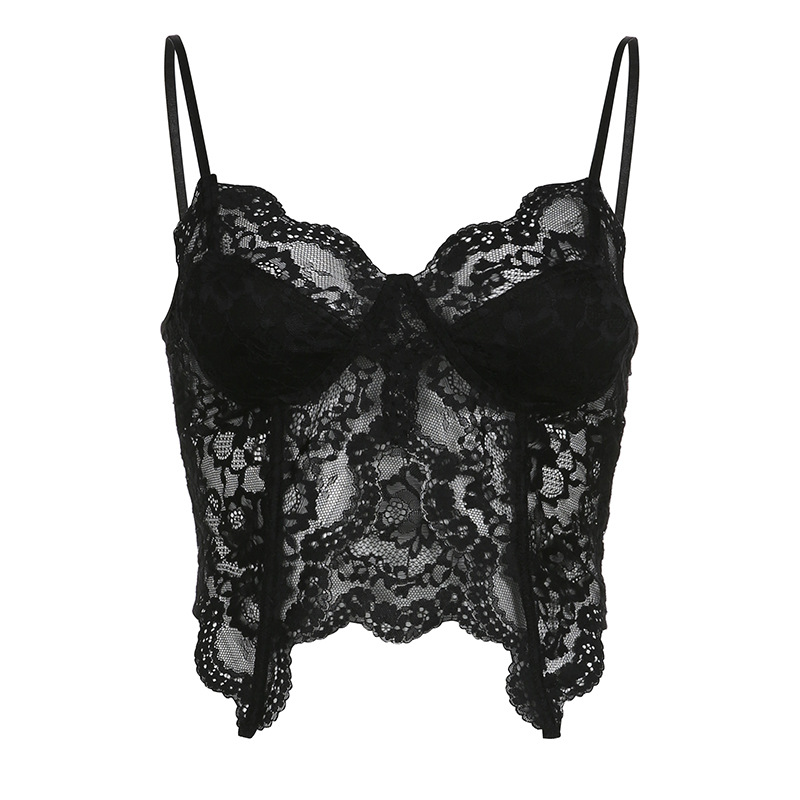 早春新款欧美辣妹风性感透视特色蕾丝波浪边双根吊带