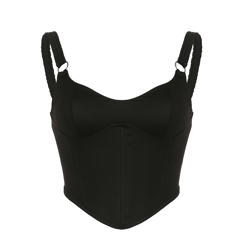 早春新款欧美辣妹风性感鱼骨胸棉金属环吊带胸衣女