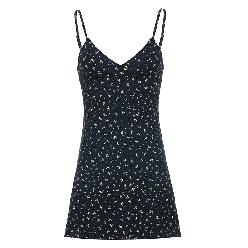 法式田园少女风V领碎花吊带裙女新款百搭显瘦性感高腰连衣裙