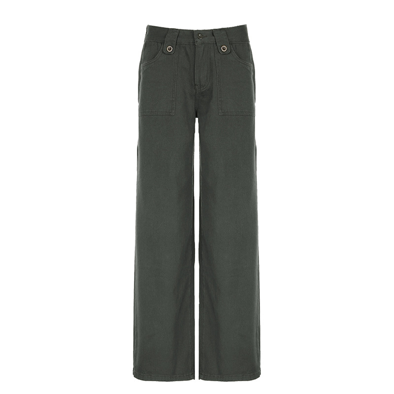 美式街头风多口袋高腰军绿工装裤跨境低腰宽松百搭阔腿休闲裤长裤