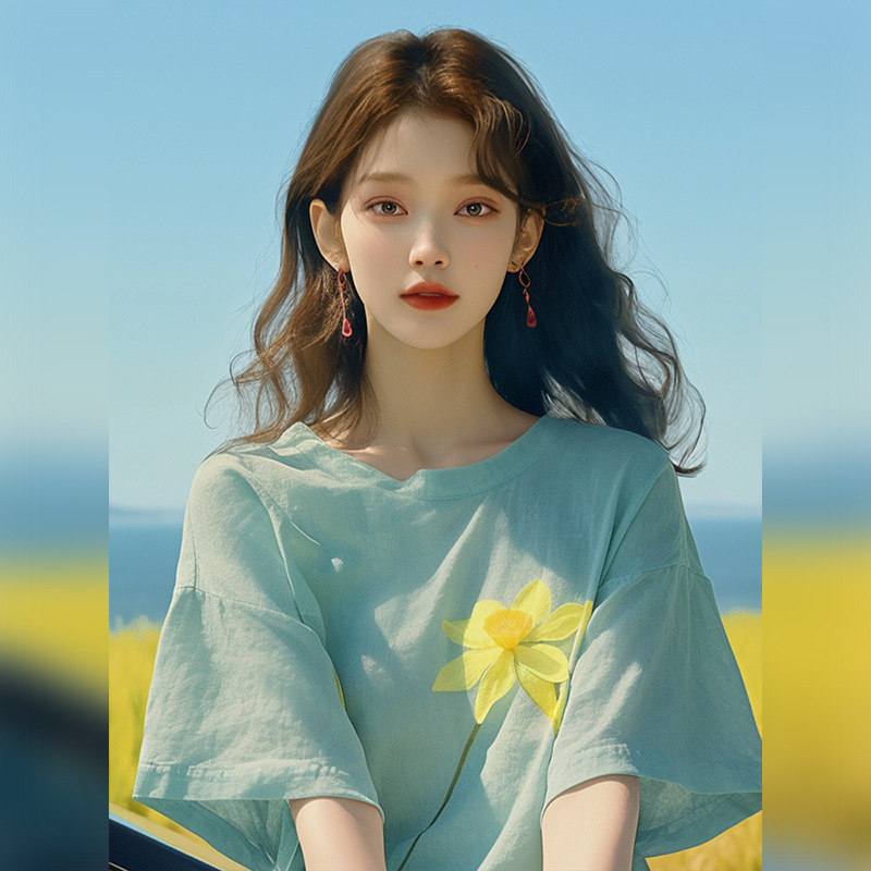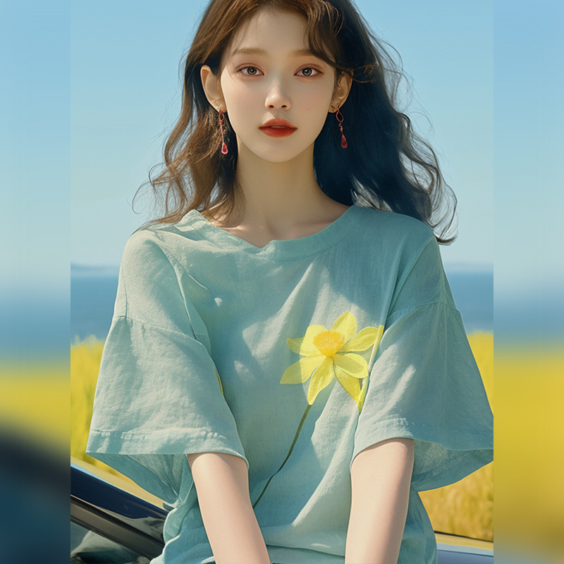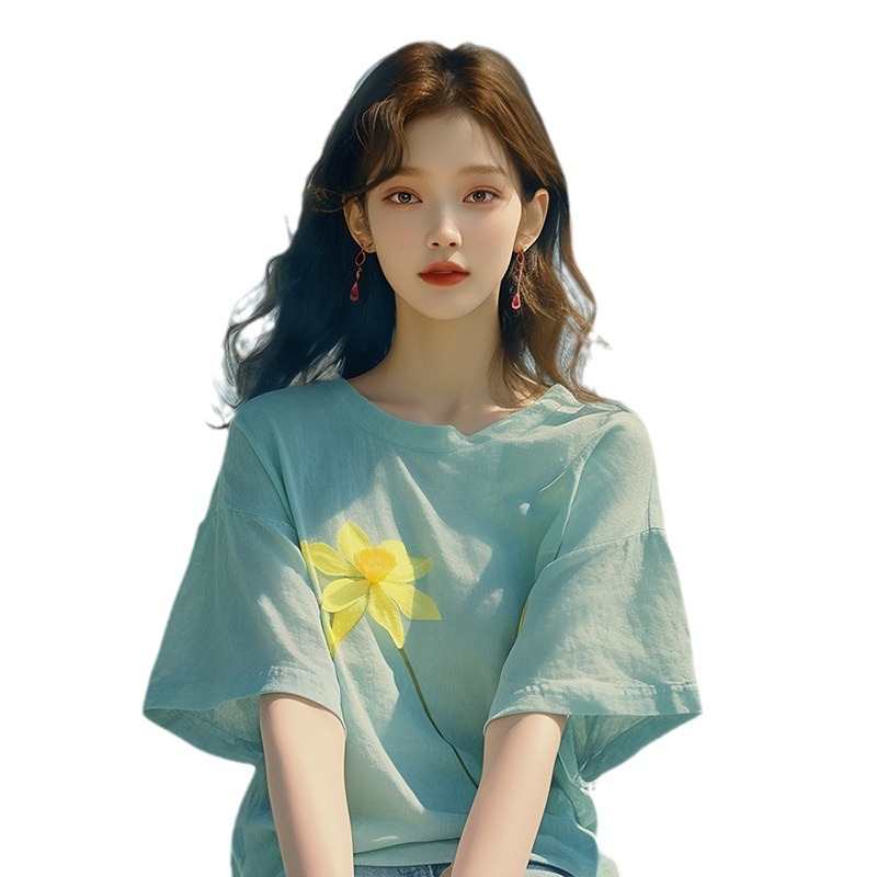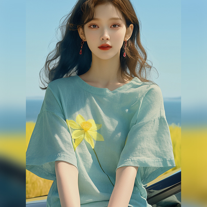 夏季多巴胺穿搭小众独特别致时髦洋气遮肚显瘦颜料画绿色印花短袖