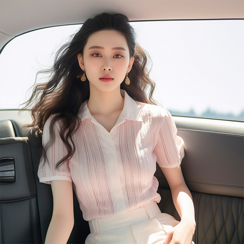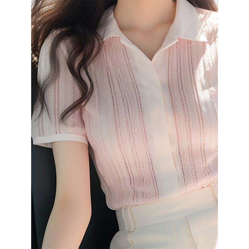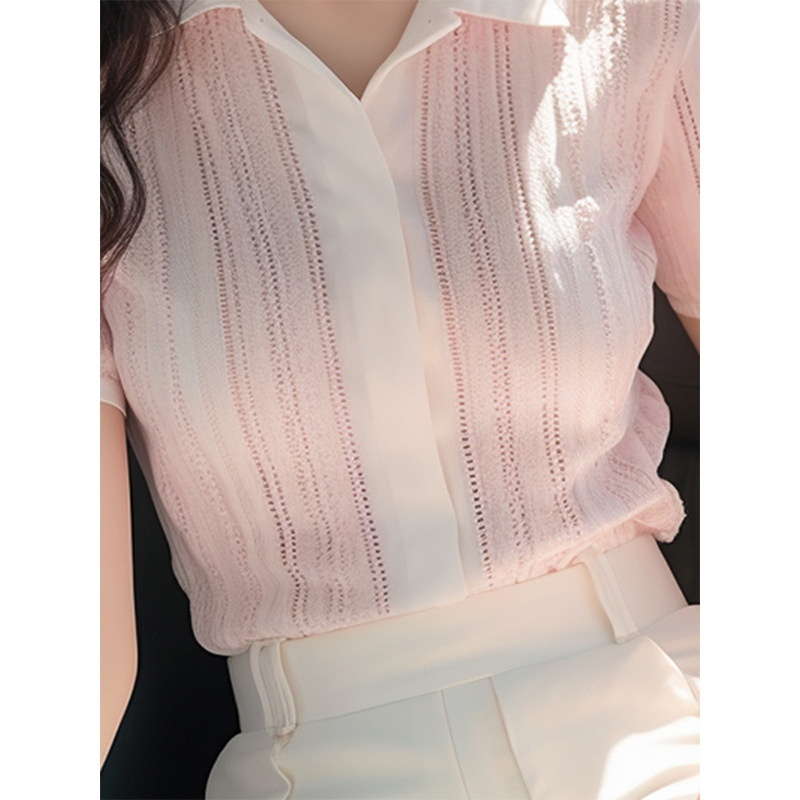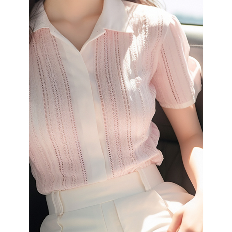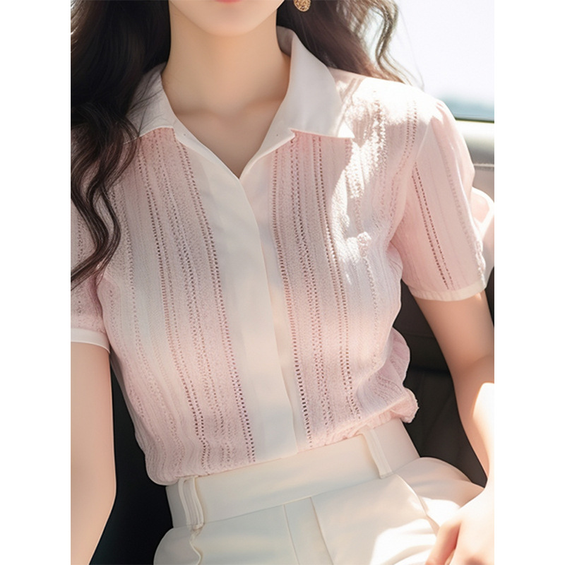 法式气质名媛时尚减龄小衫高级感超好看小香风polo衫粉色衬衫夏季