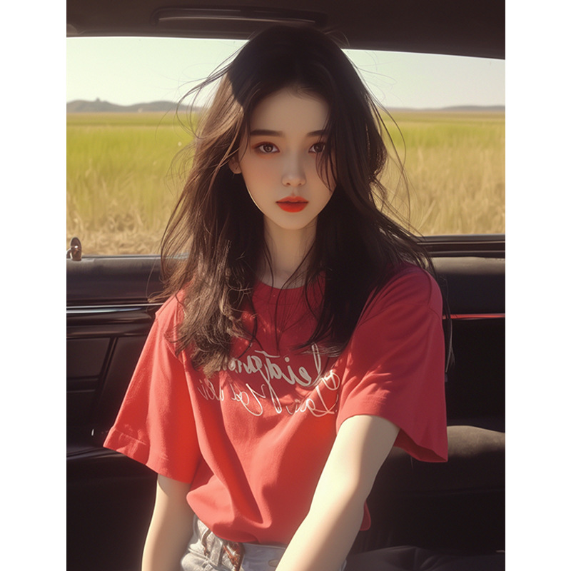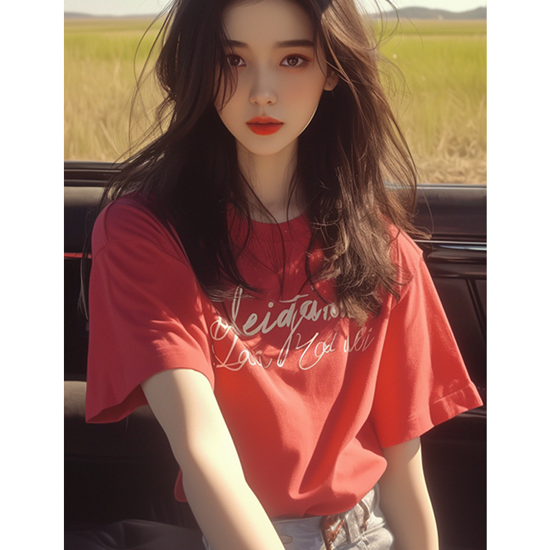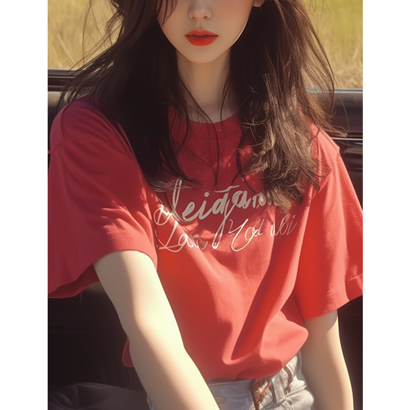 夏季新款小衫韩系chic洋气独特别致漂亮上衣时尚百搭红色短袖T恤