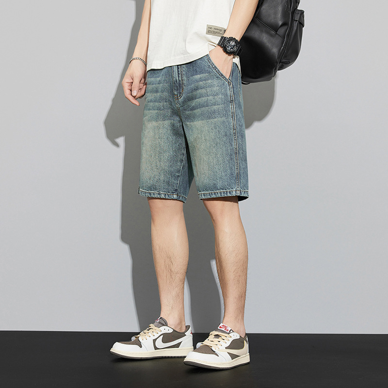 新款水洗百搭牛仔裤短裤男士夏季宽松直筒复古高街潮流五分裤子男
