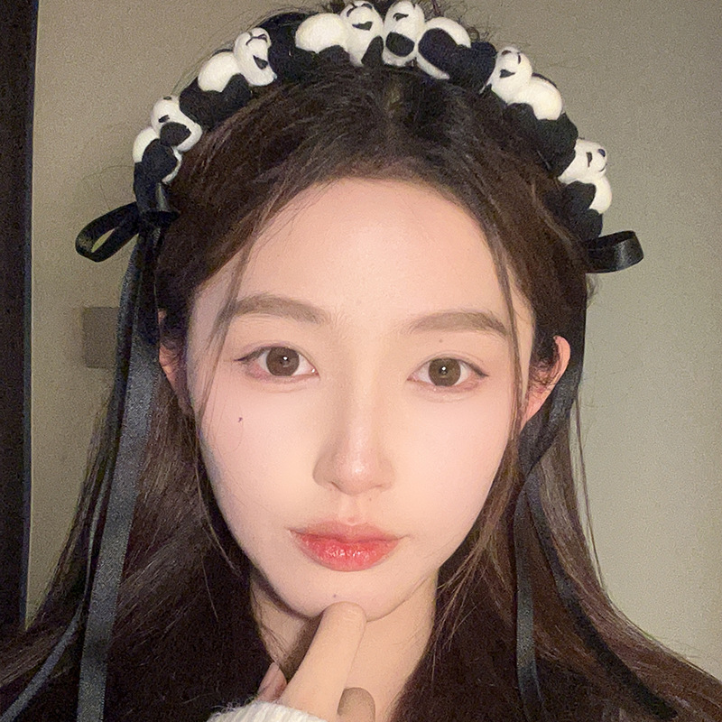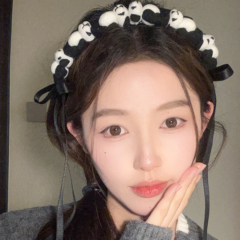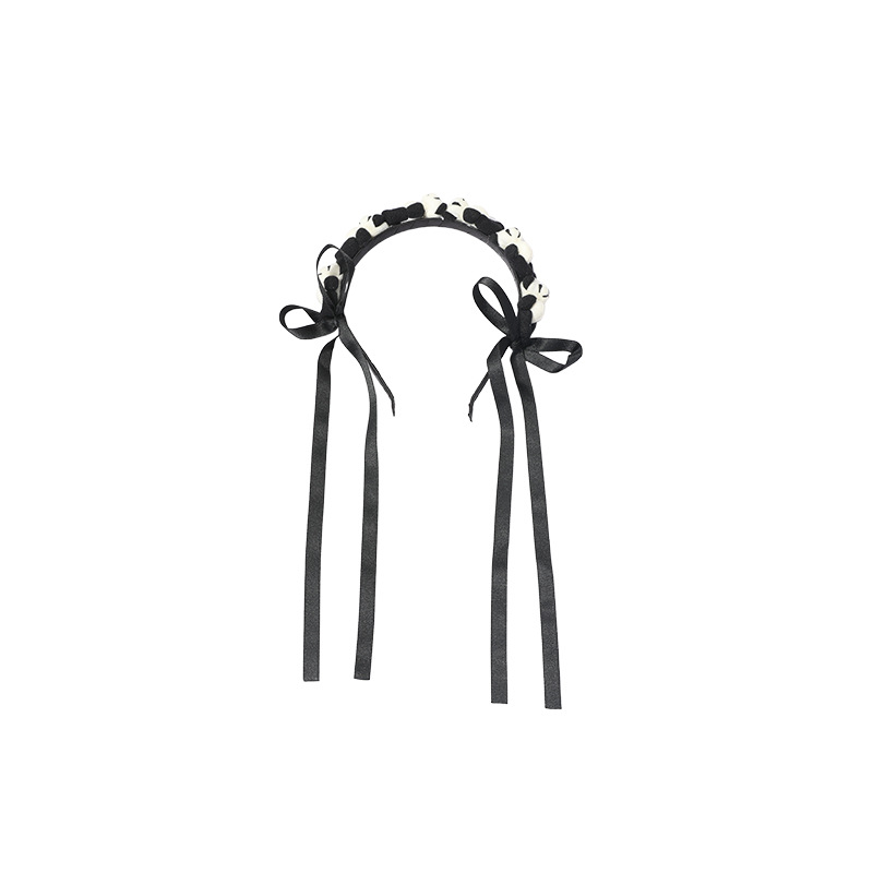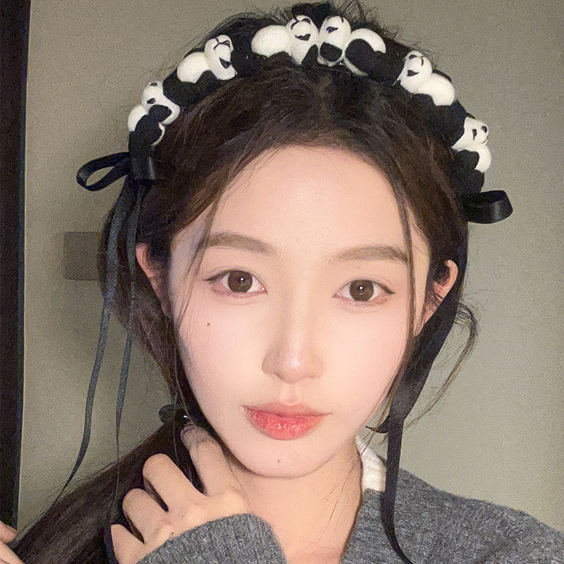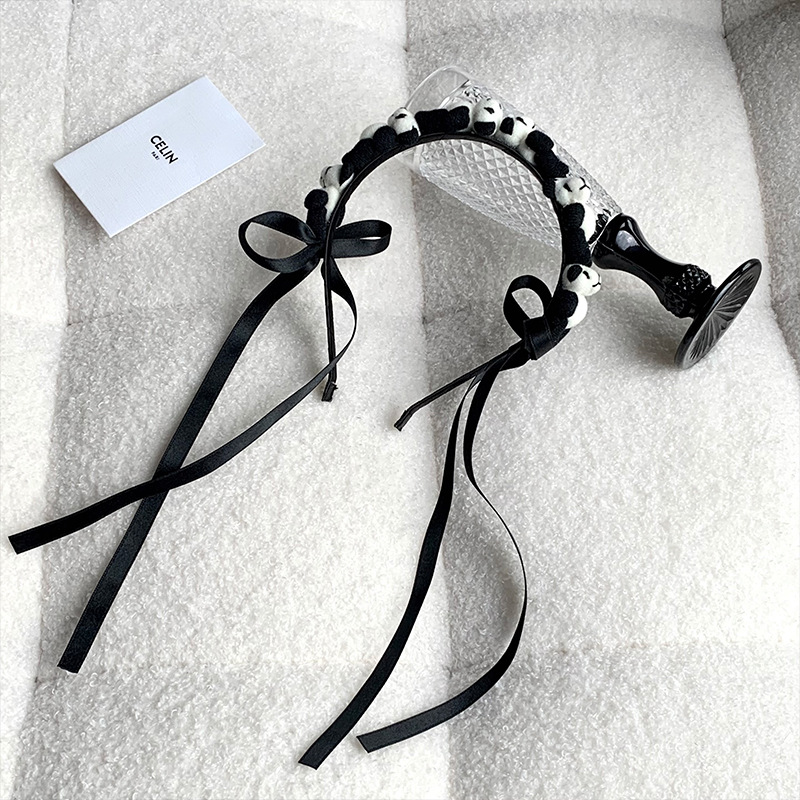 可爱小熊猫压发头箍甜美气质黑色蝴蝶结飘带发卡百搭外出压发头饰