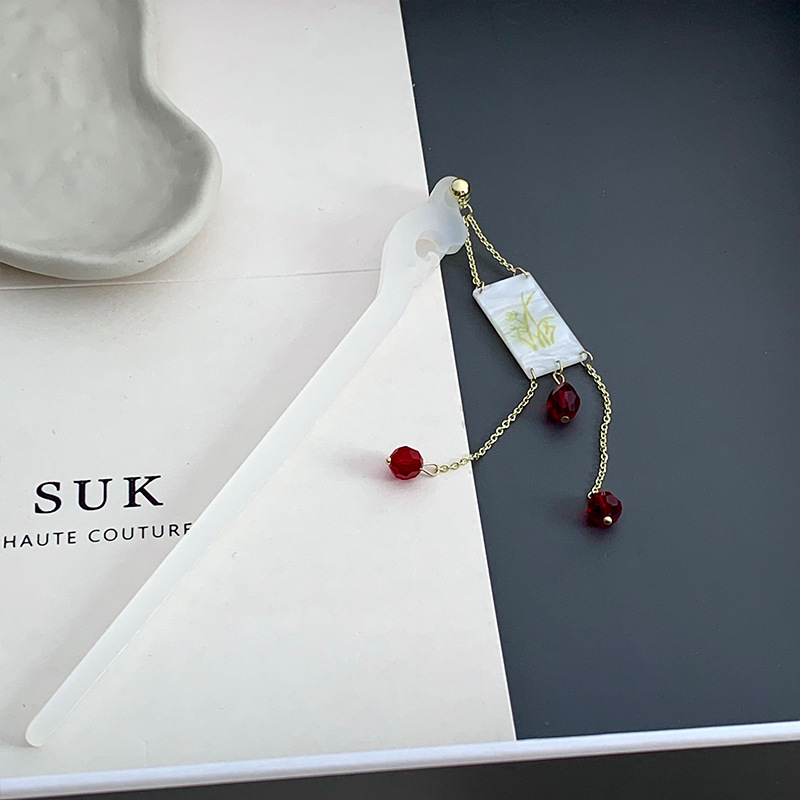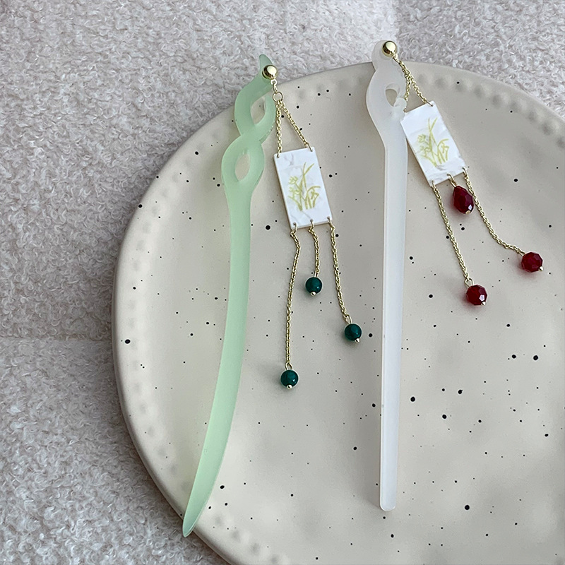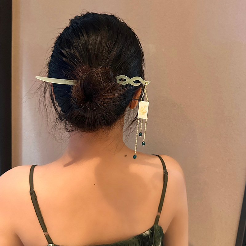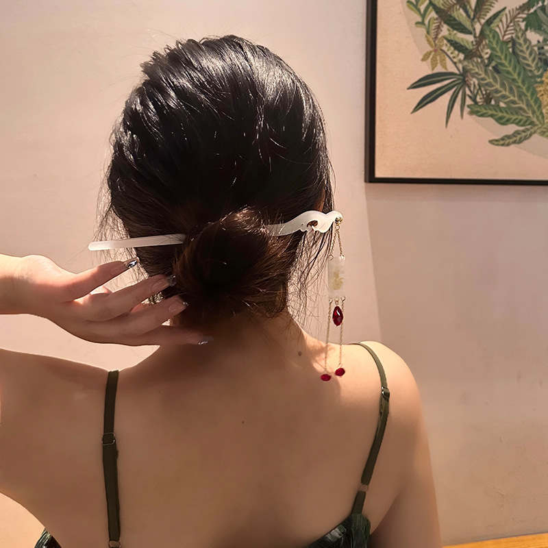 新中式气质方形树脂流苏发簪女国风设计感发钗古风旗袍簪子配饰潮