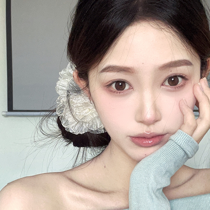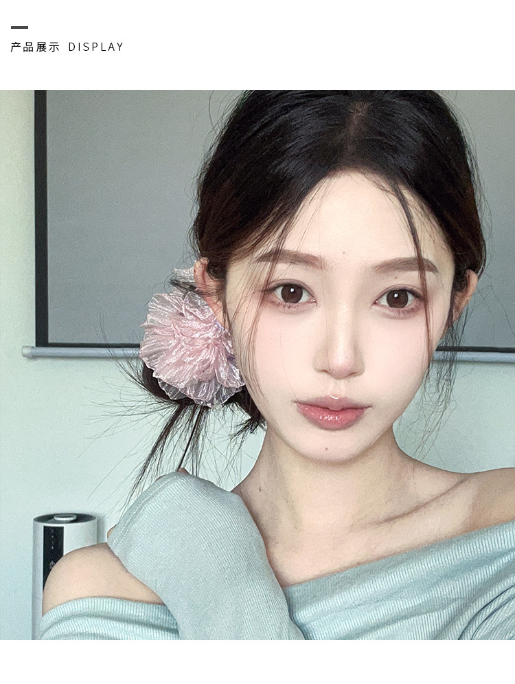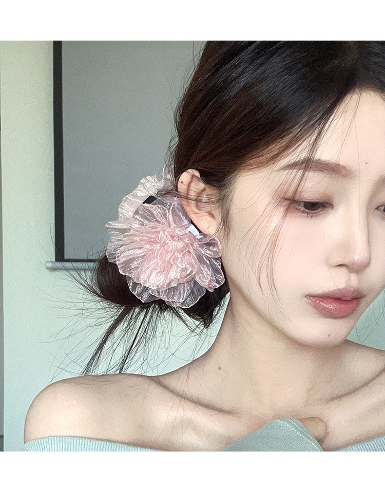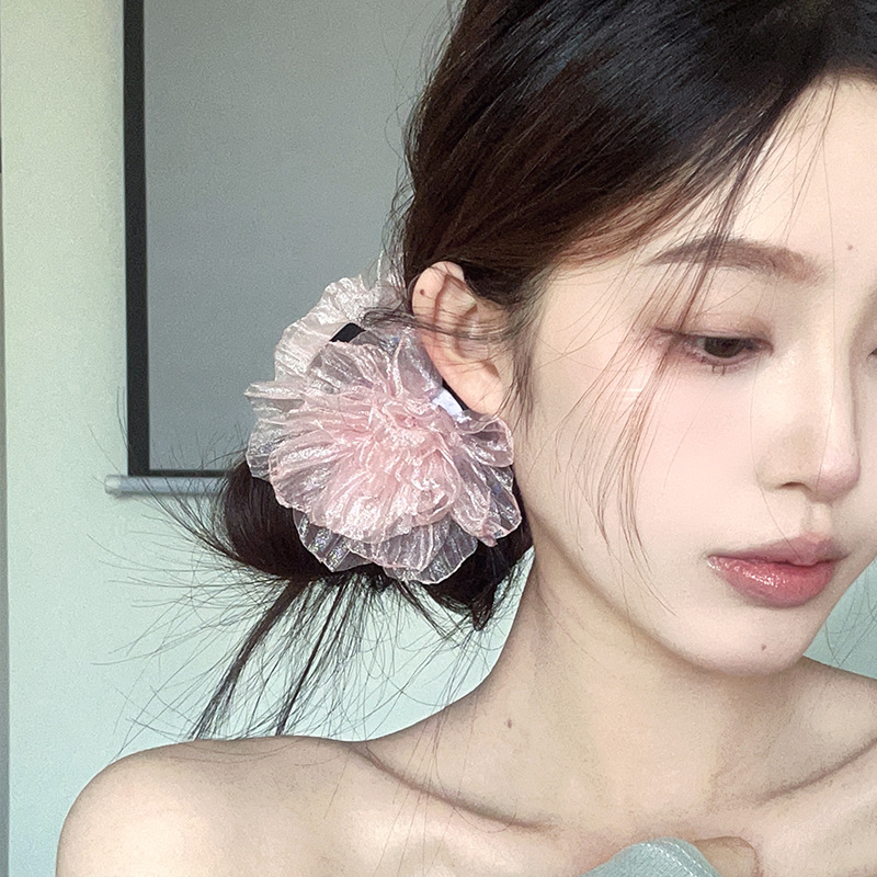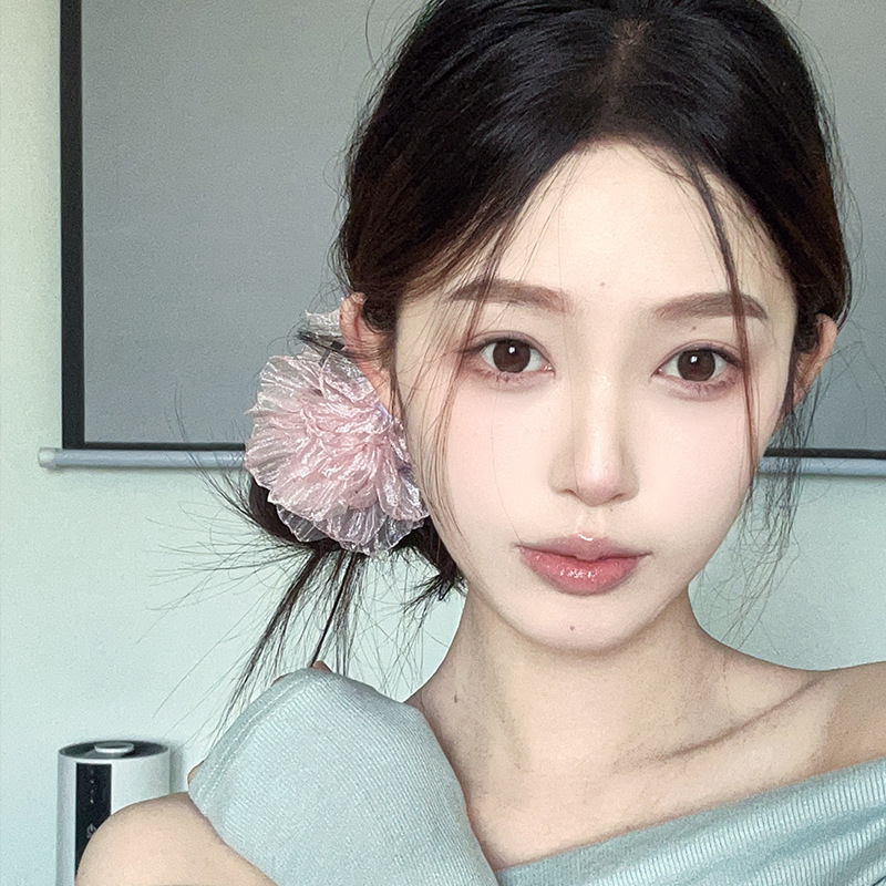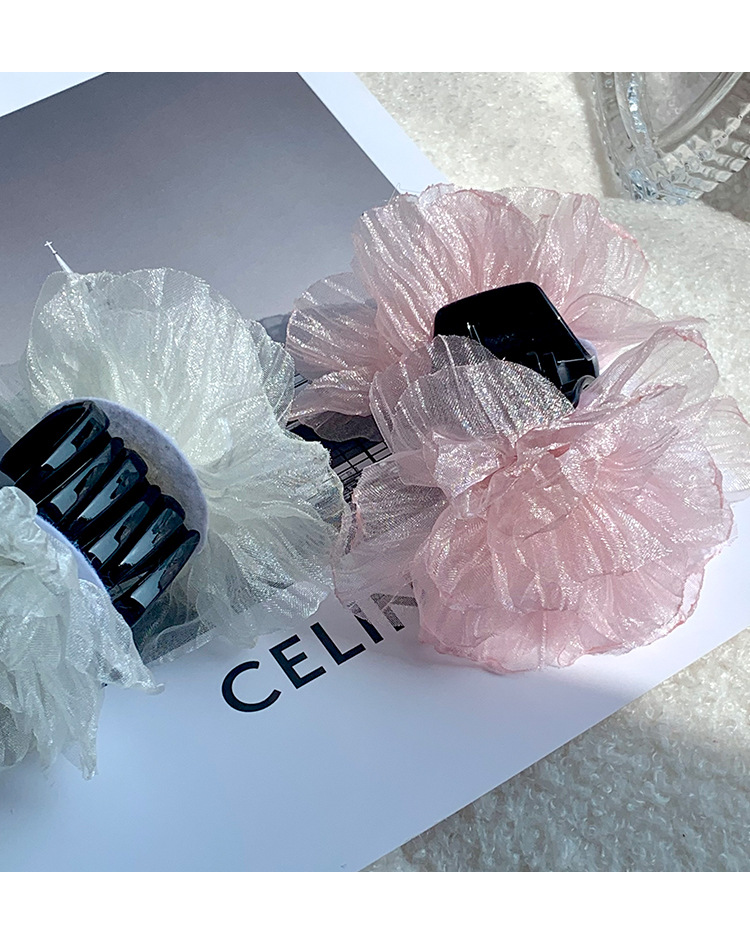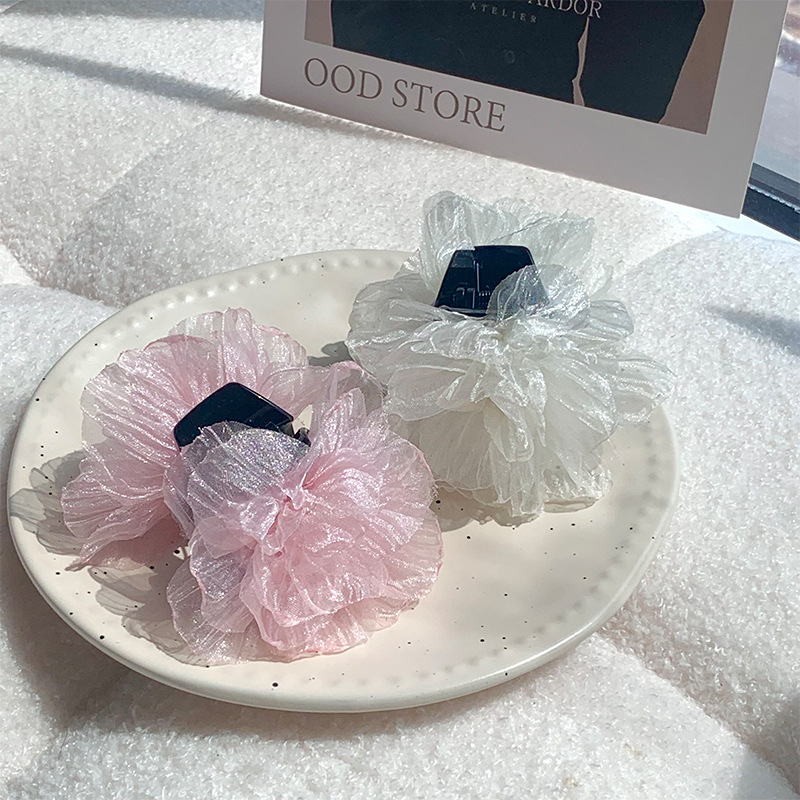 欧根纱山茶花朵抓夹发夹侧马尾发卡少女甜美超仙头饰纯欲风配饰女