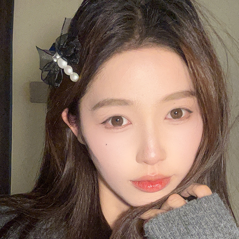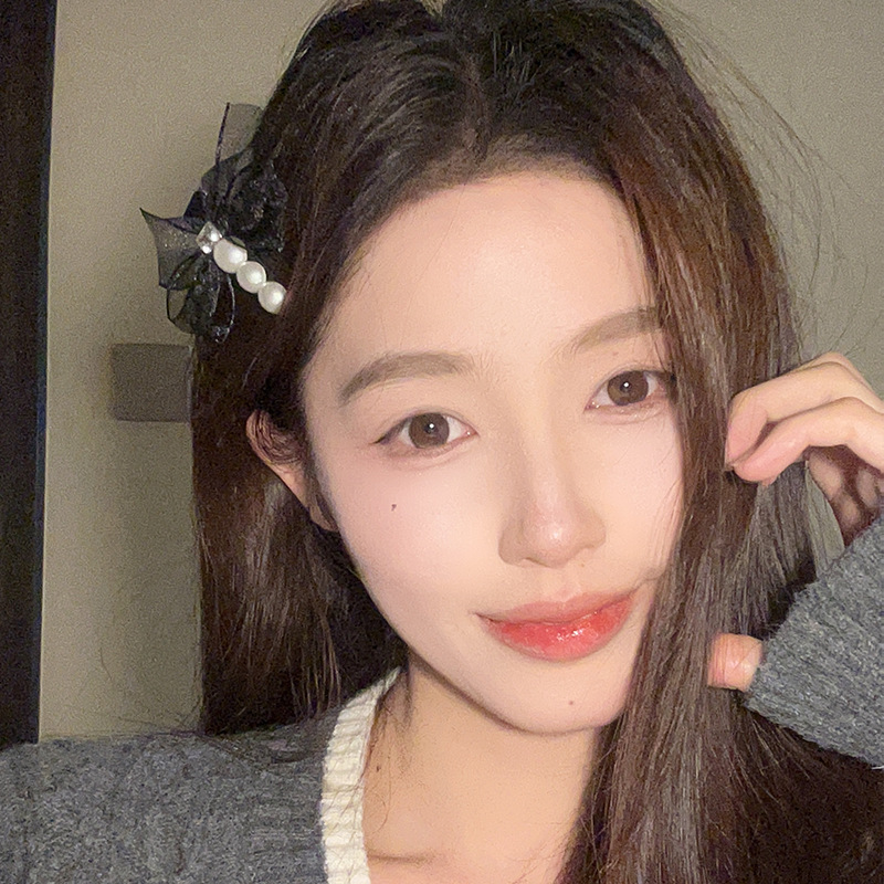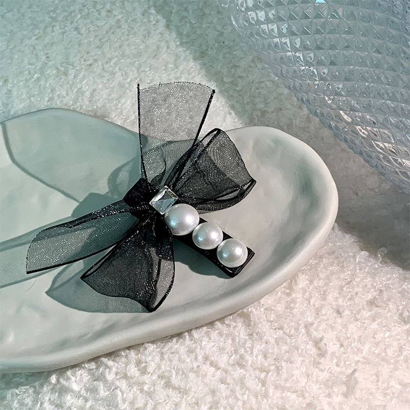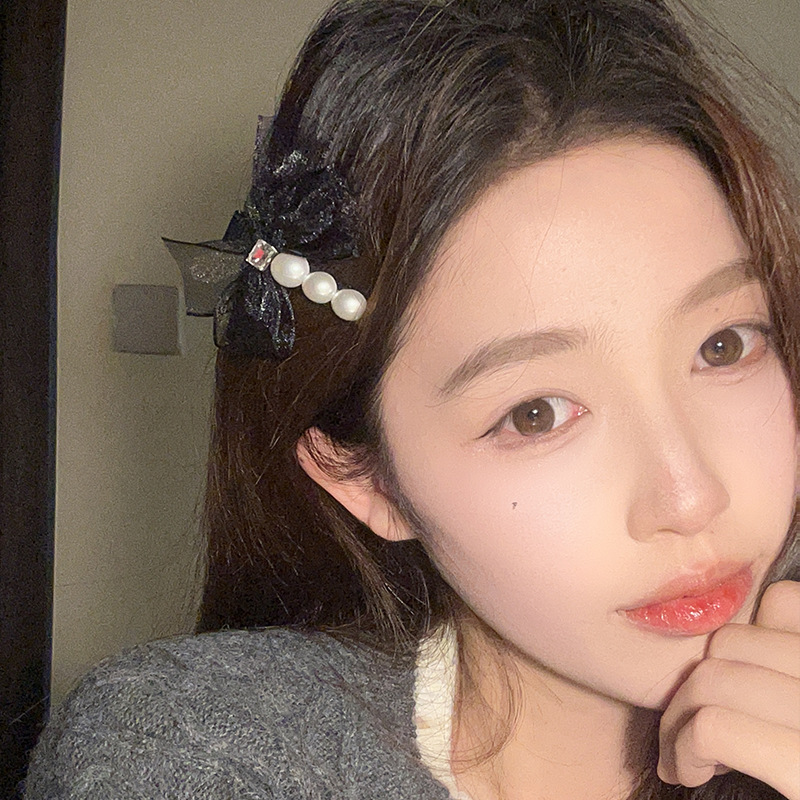 黑色蝴蝶结网纱珍珠边夹网红高级感小发夹年新款甜美碎发夹子