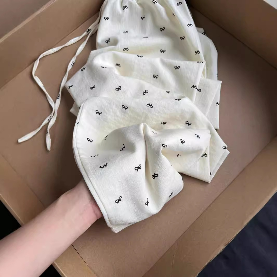 蝴蝶结印花阔腿裤女夏季新款韩系减龄宽松垂感显瘦休闲裤子薄
