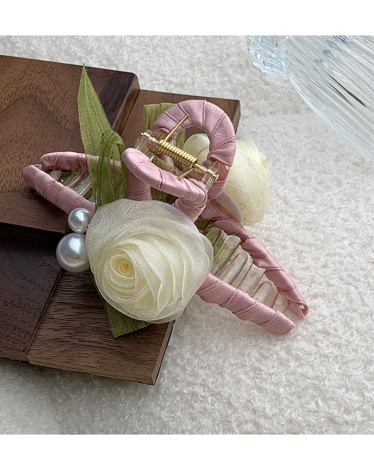 春夏新款温婉气质山茶花抓夹女甜美优雅后脑勺盘发鲨鱼夹发卡发饰