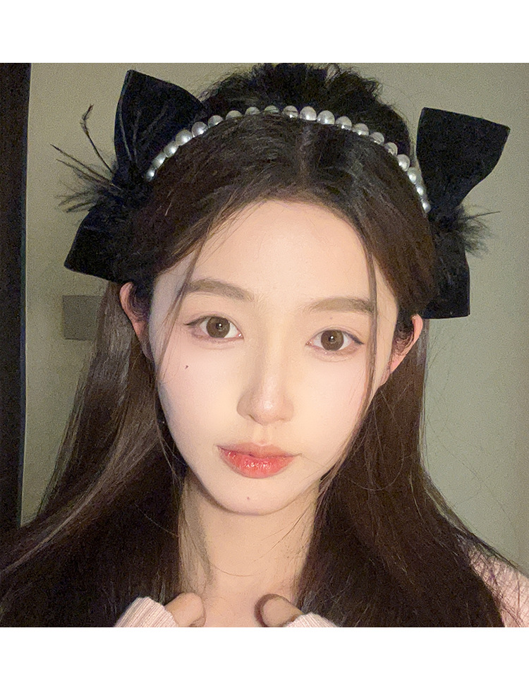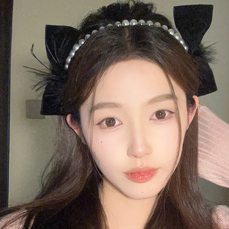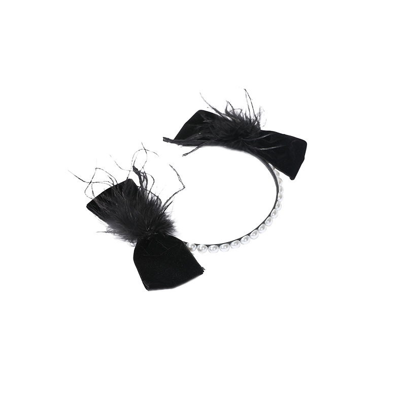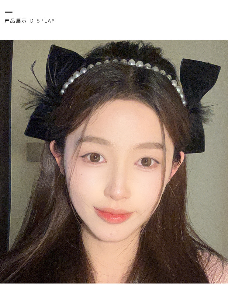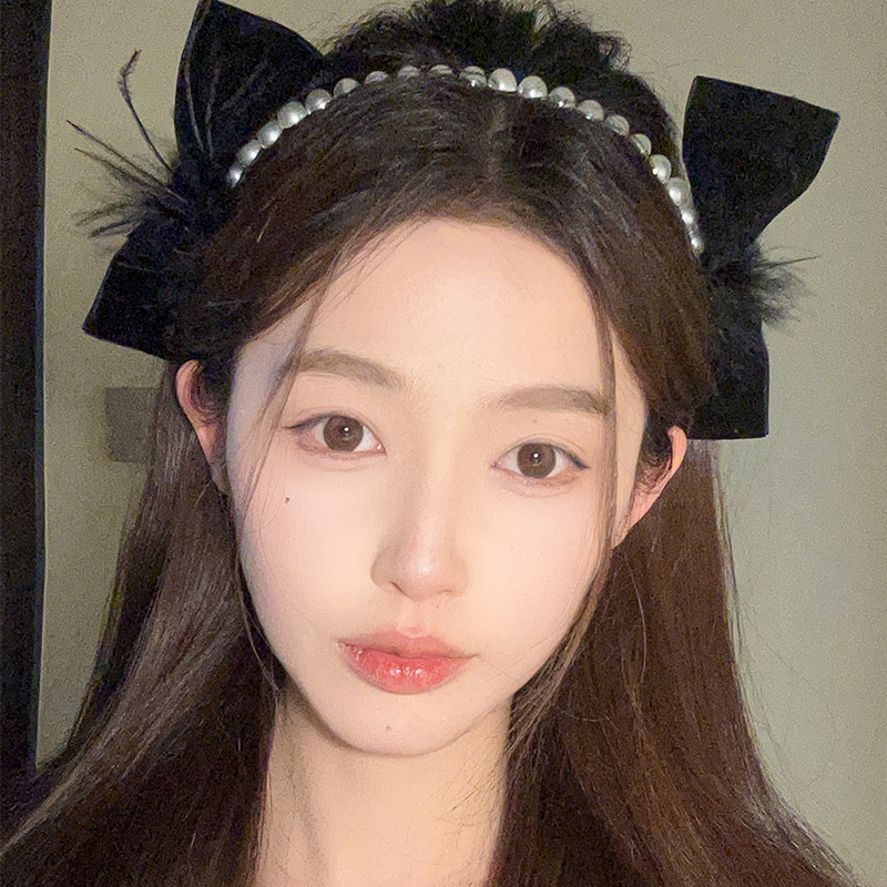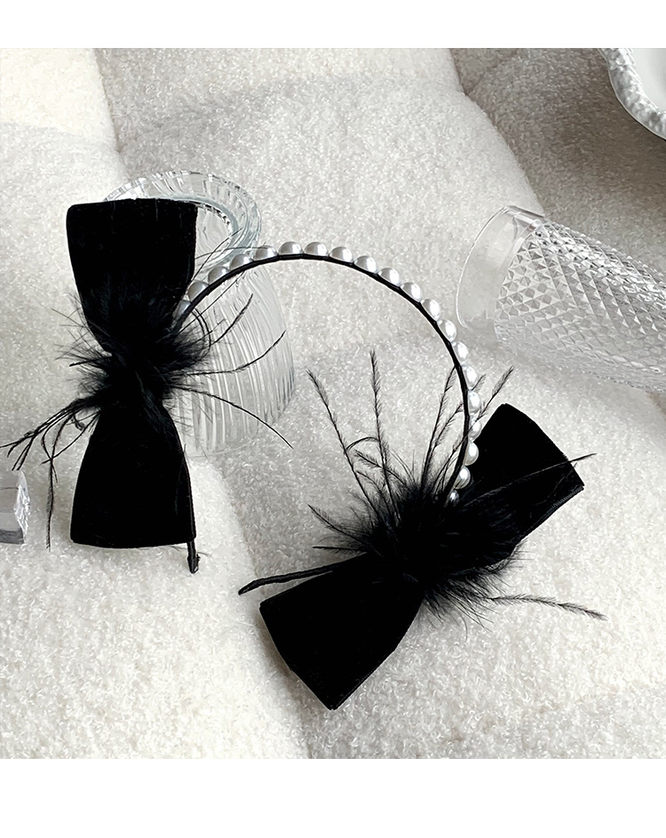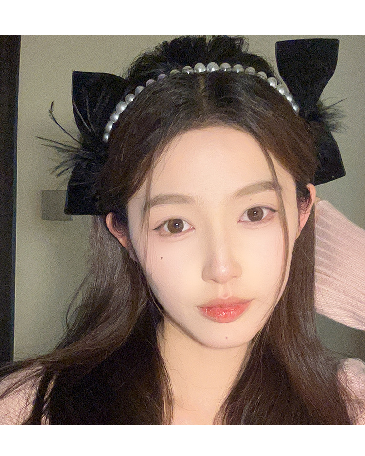 氛围感浪漫气质珍珠蝴蝶结发箍女轻奢高级感黑色羽毛头箍外出头饰