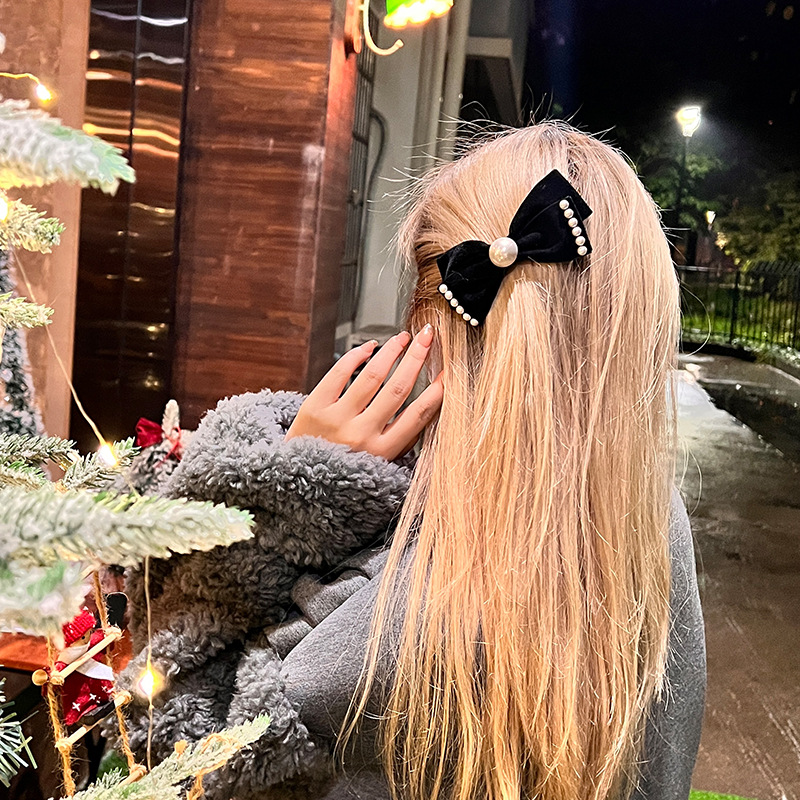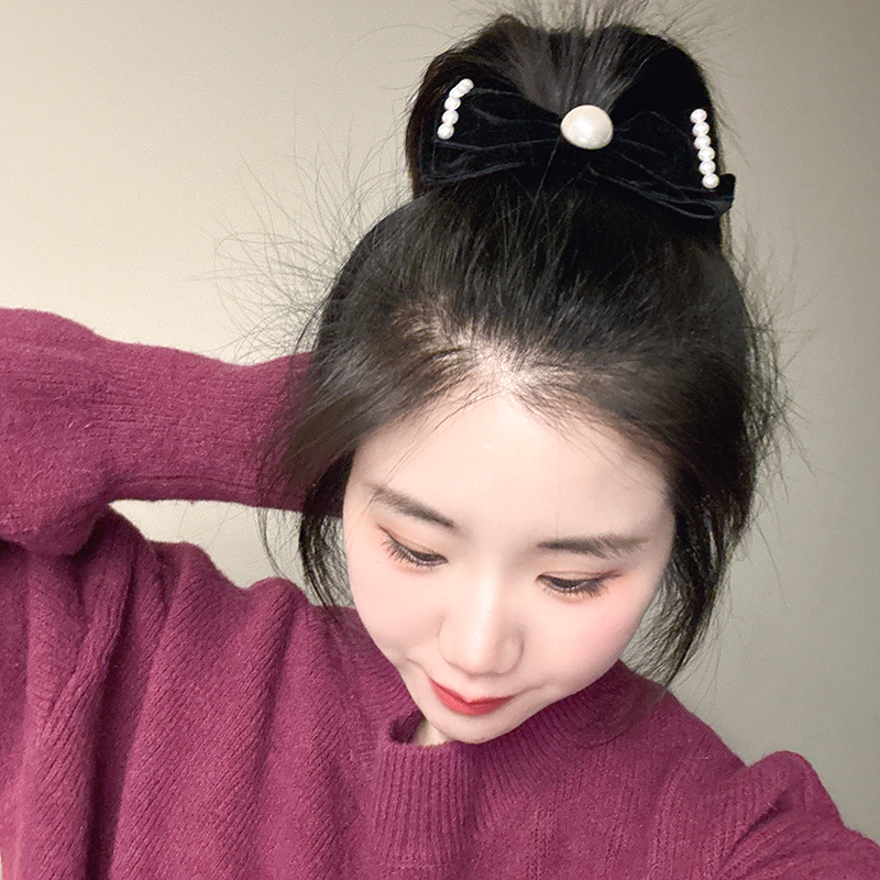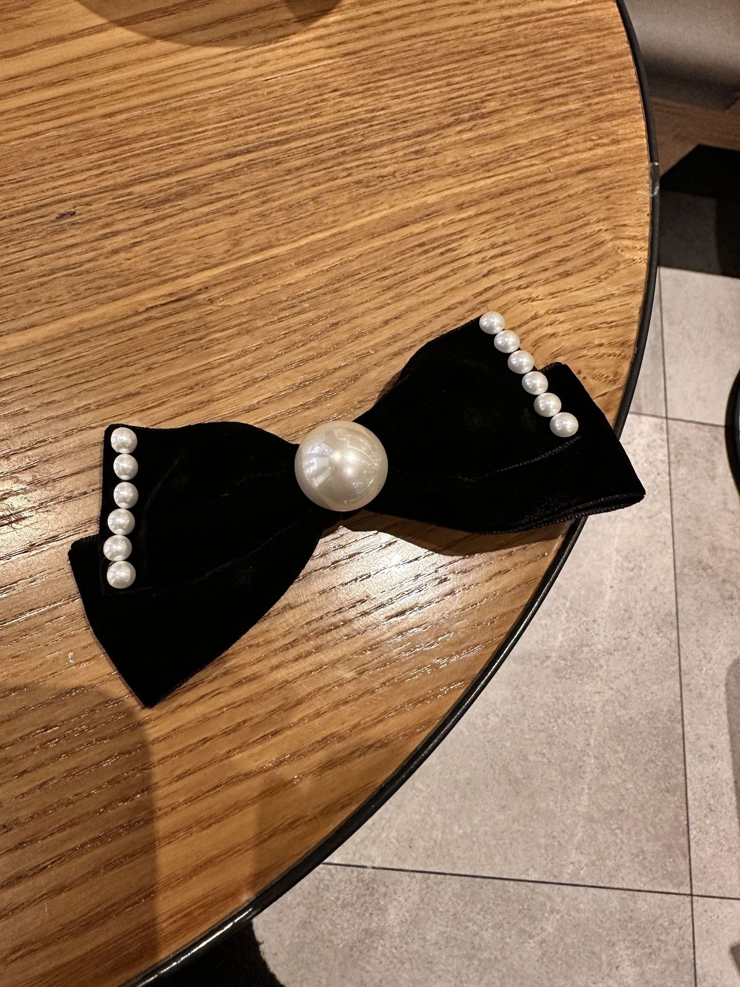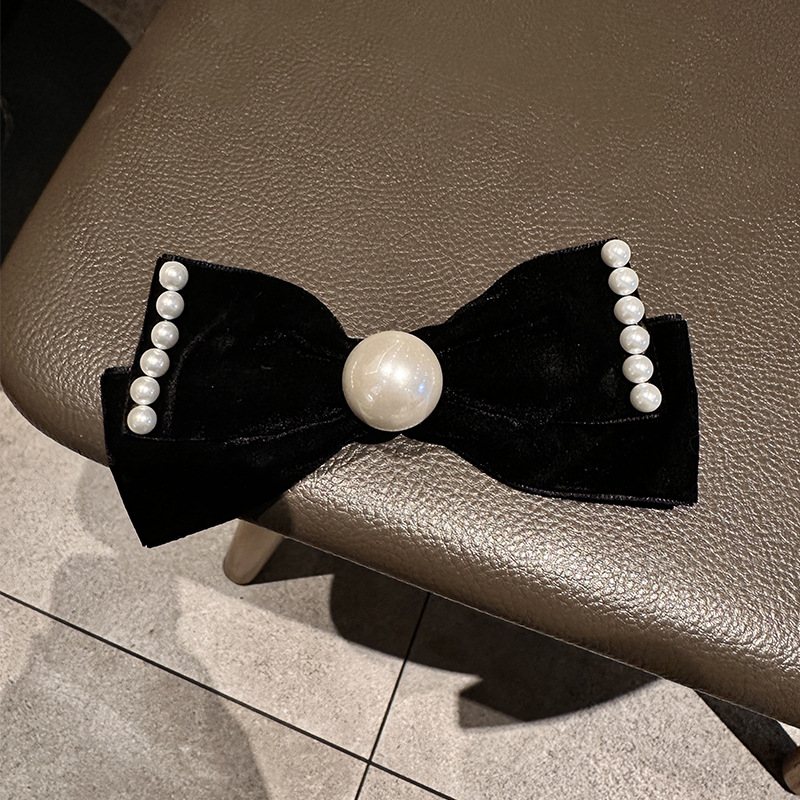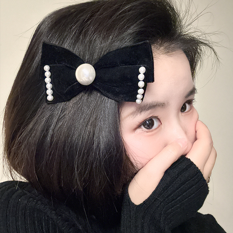 复古气质甜美丝绒立体珍珠蝴蝶结发夹鸭嘴夹边夹优雅高级感顶夹女