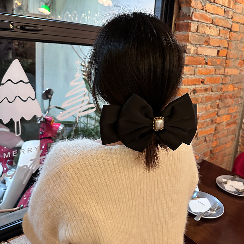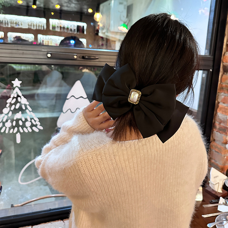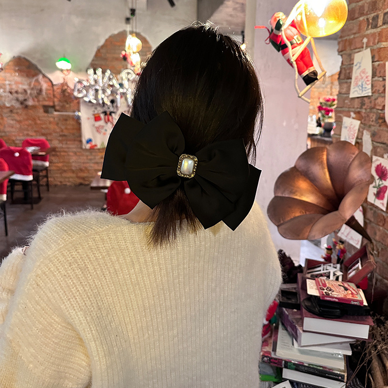 大号蝴蝶结发夹女后脑勺缎面发卡马尾弹簧夹子新款高级感头饰