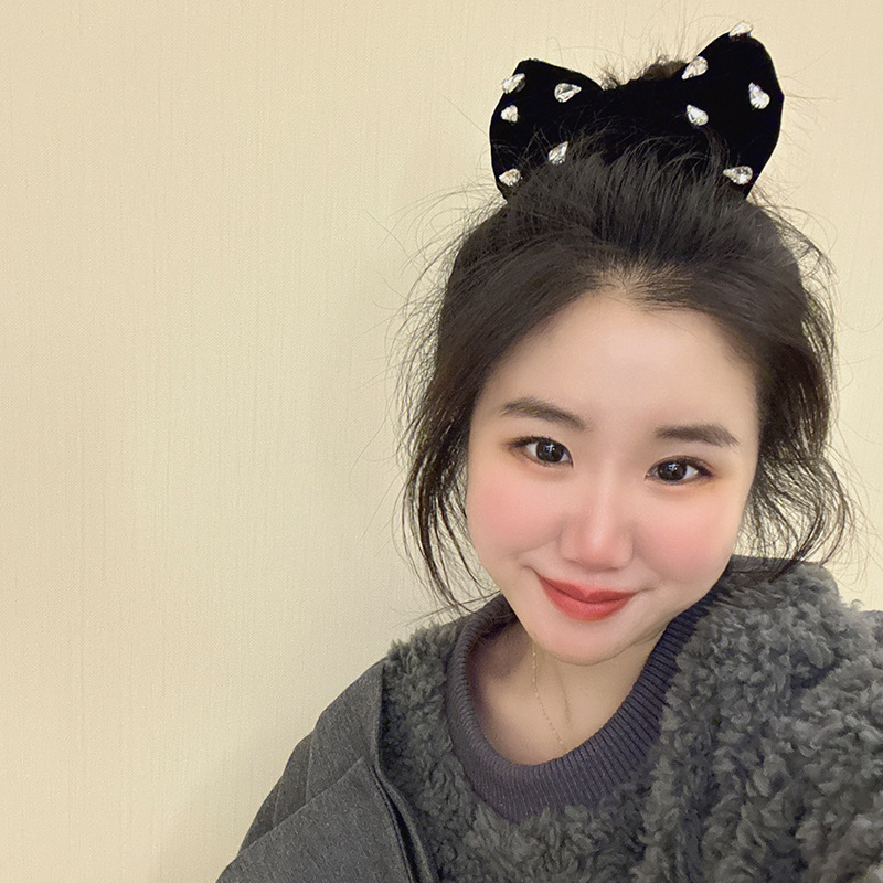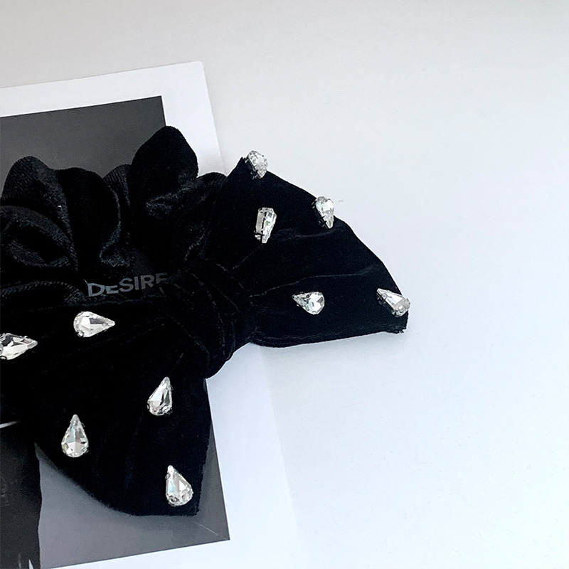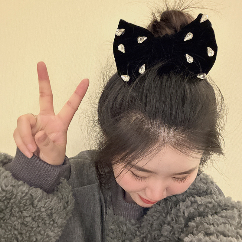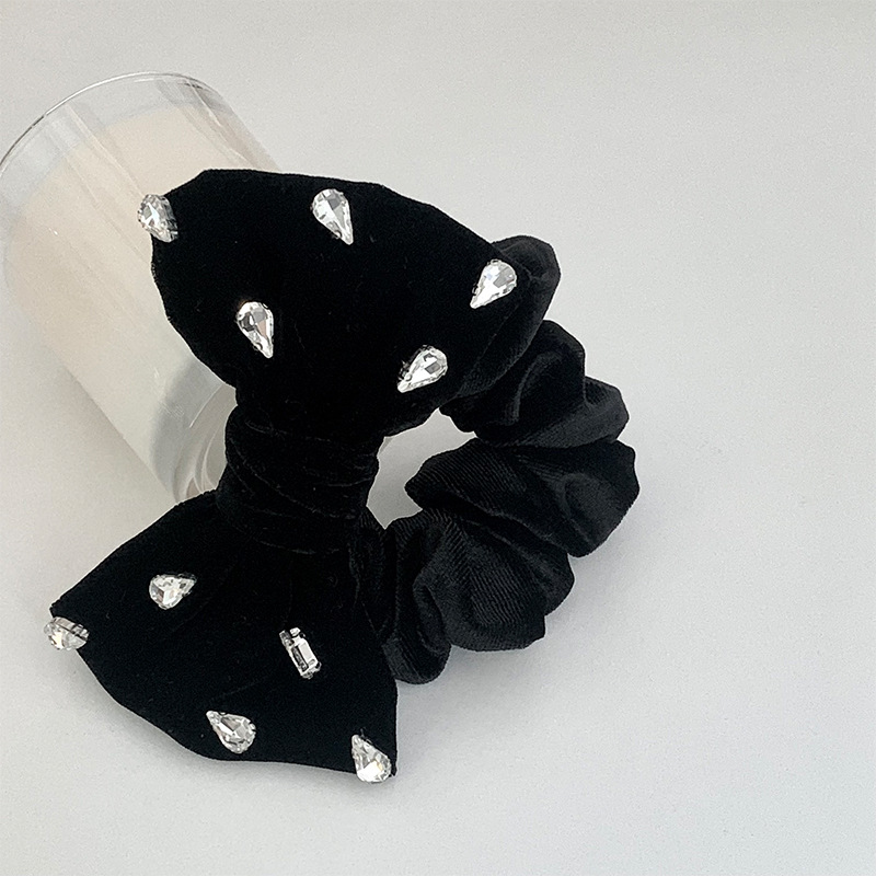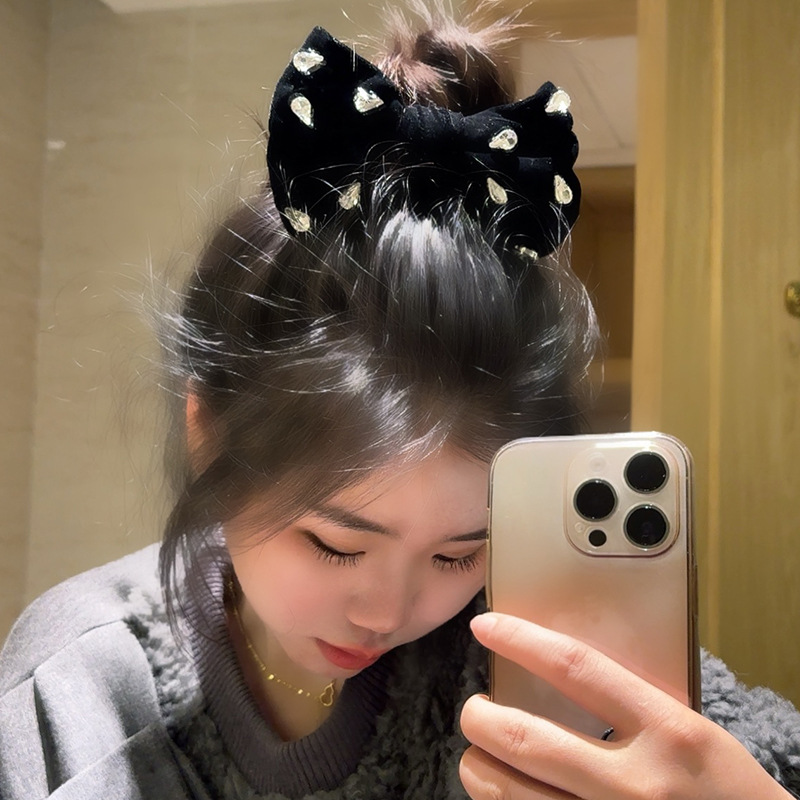 气质奢华水钻丝绒蝴蝶结发绳高级感少女大肠发圈复古百搭扎发头饰