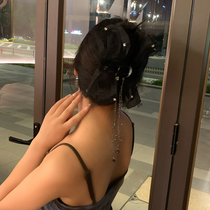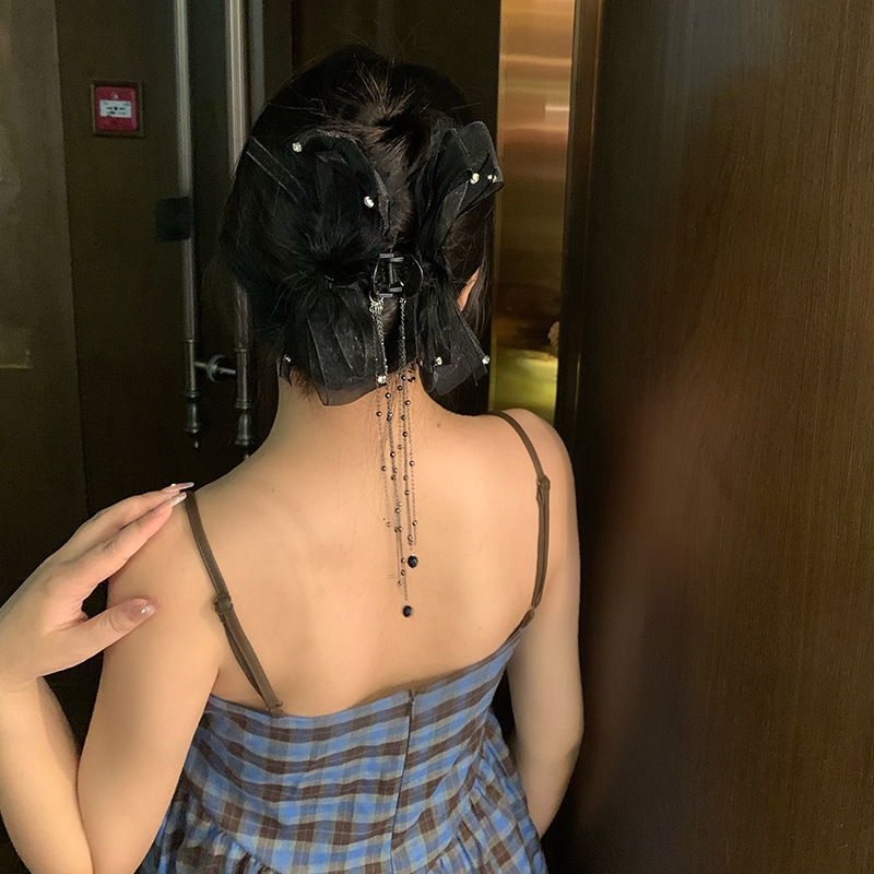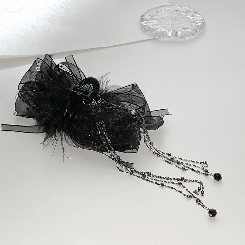 ins风羽毛网纱蝴蝶结流苏抓夹女后脑勺显发量盘发鲨鱼夹马尾发卡