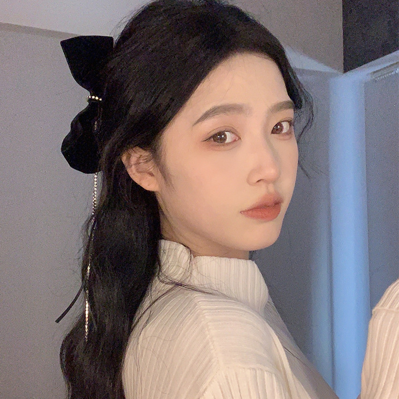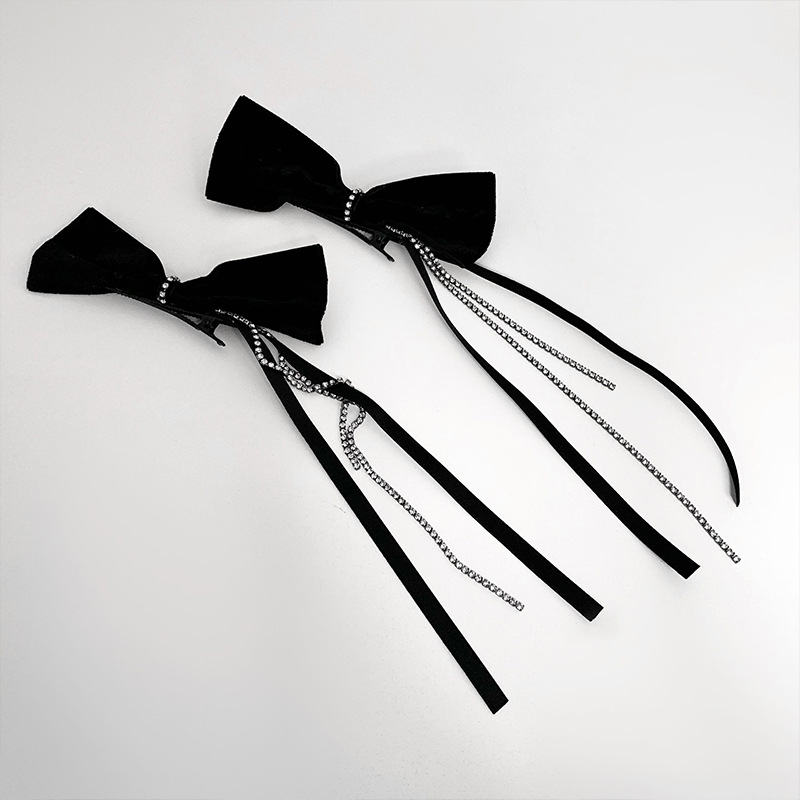 法式复古立体丝绒蝴蝶结闪钻流苏发夹气质百搭侧边夹发卡头饰发饰