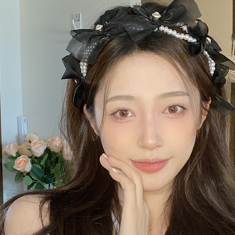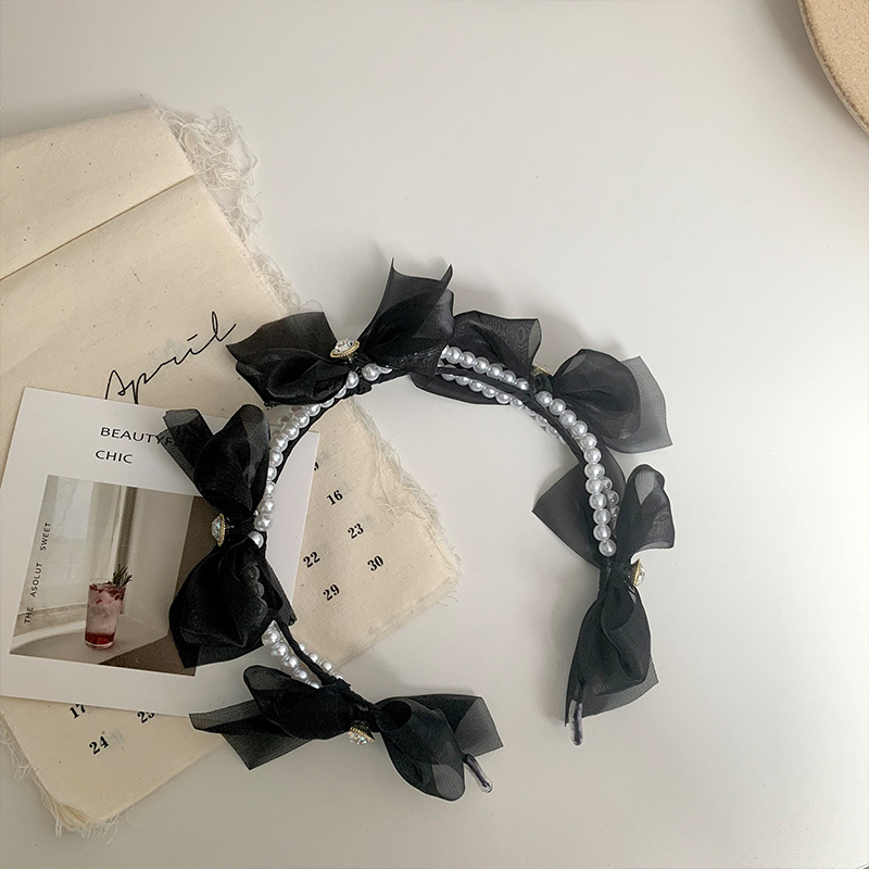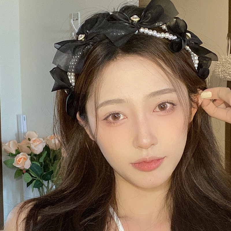 夏天法式珍珠网纱蝴蝶结发箍女网红新款潮头饰复古头箍发饰