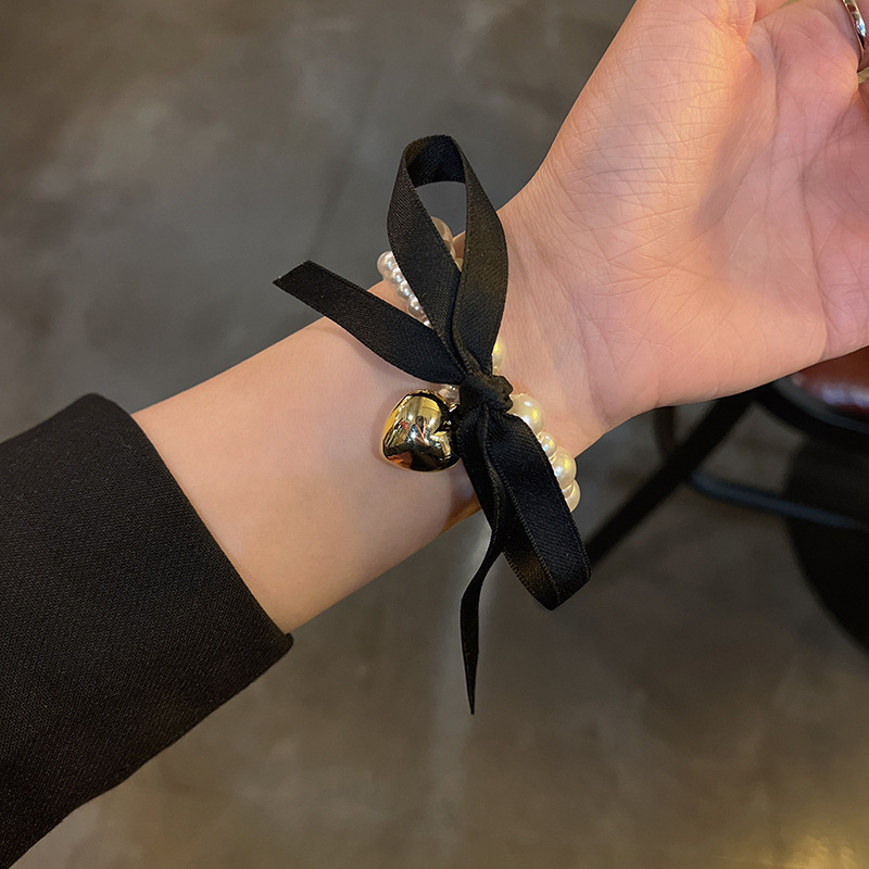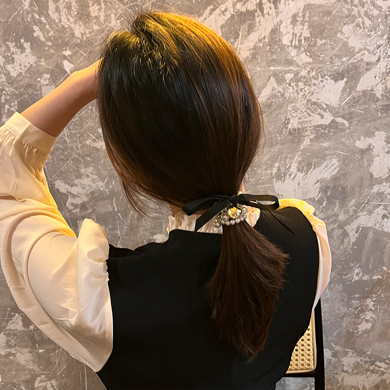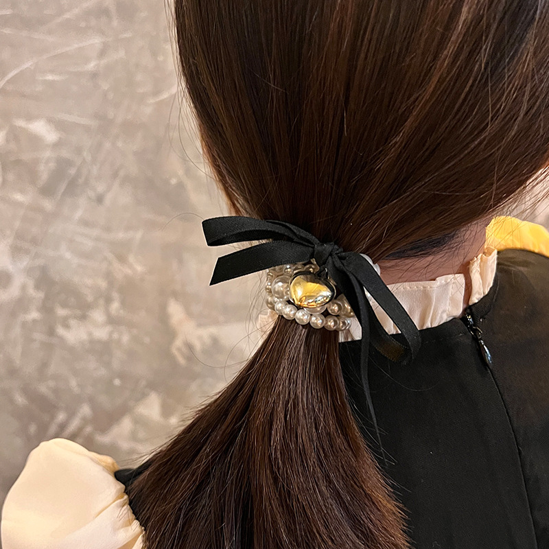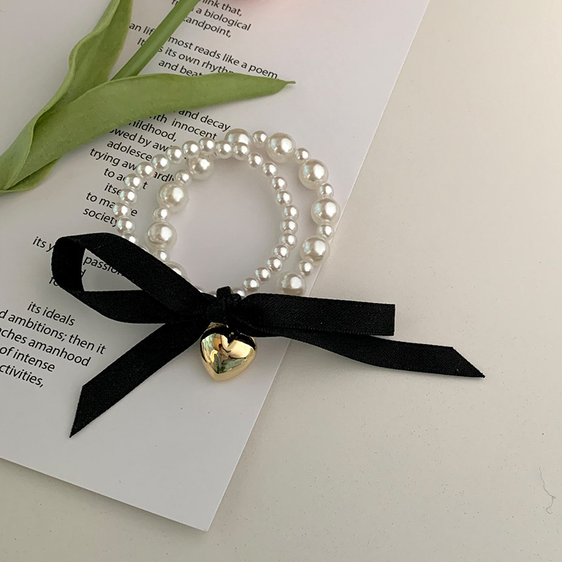 气质优雅蝴蝶结珍珠爱心发圈头绳发绳橡皮筋扎头发高级感发饰头饰