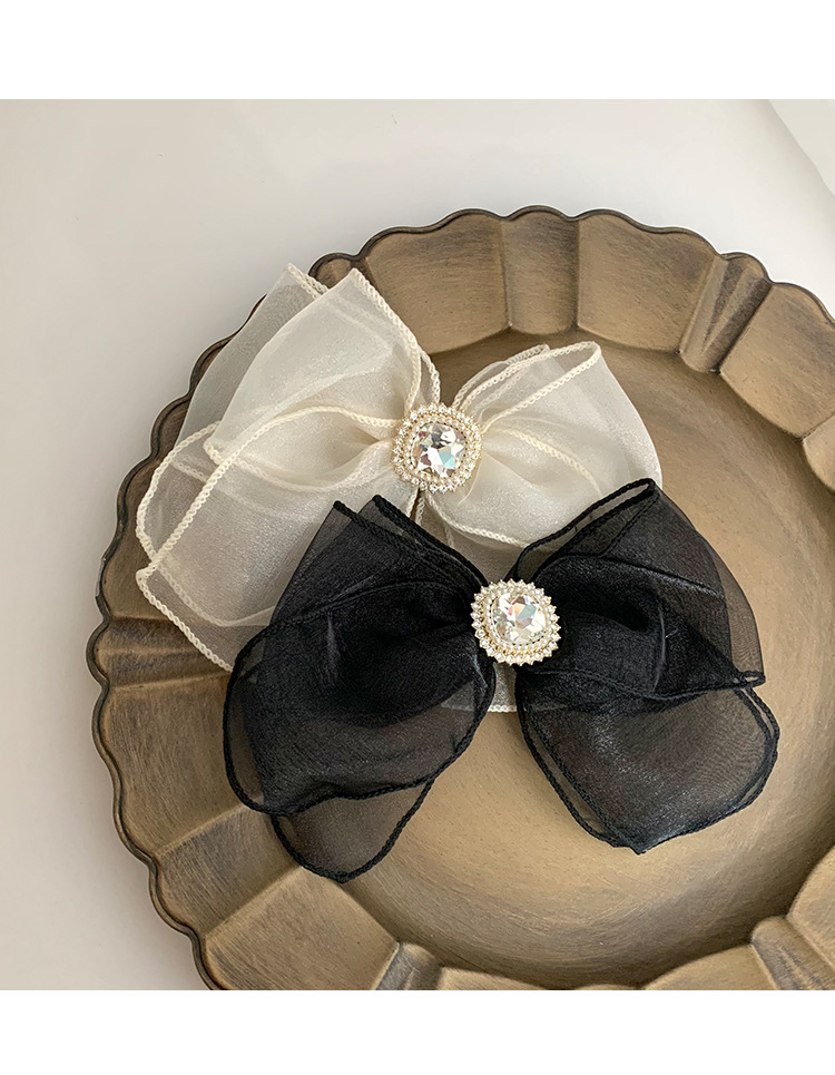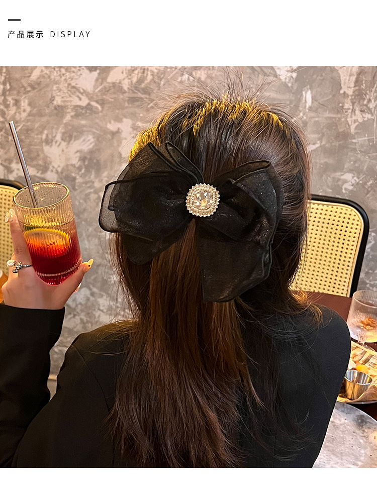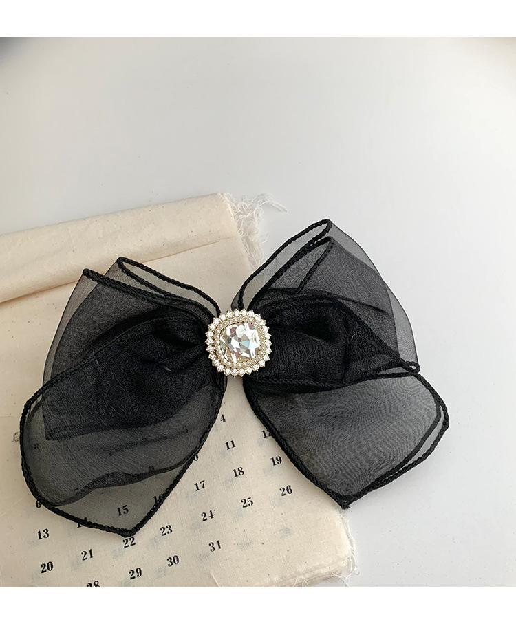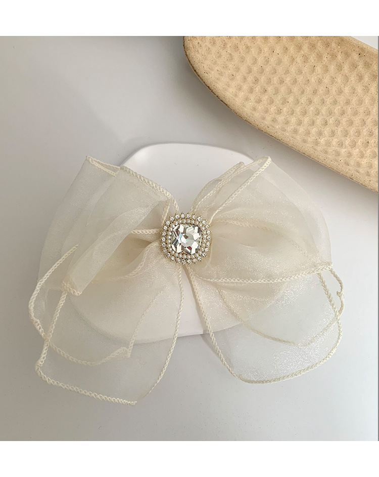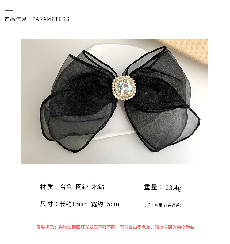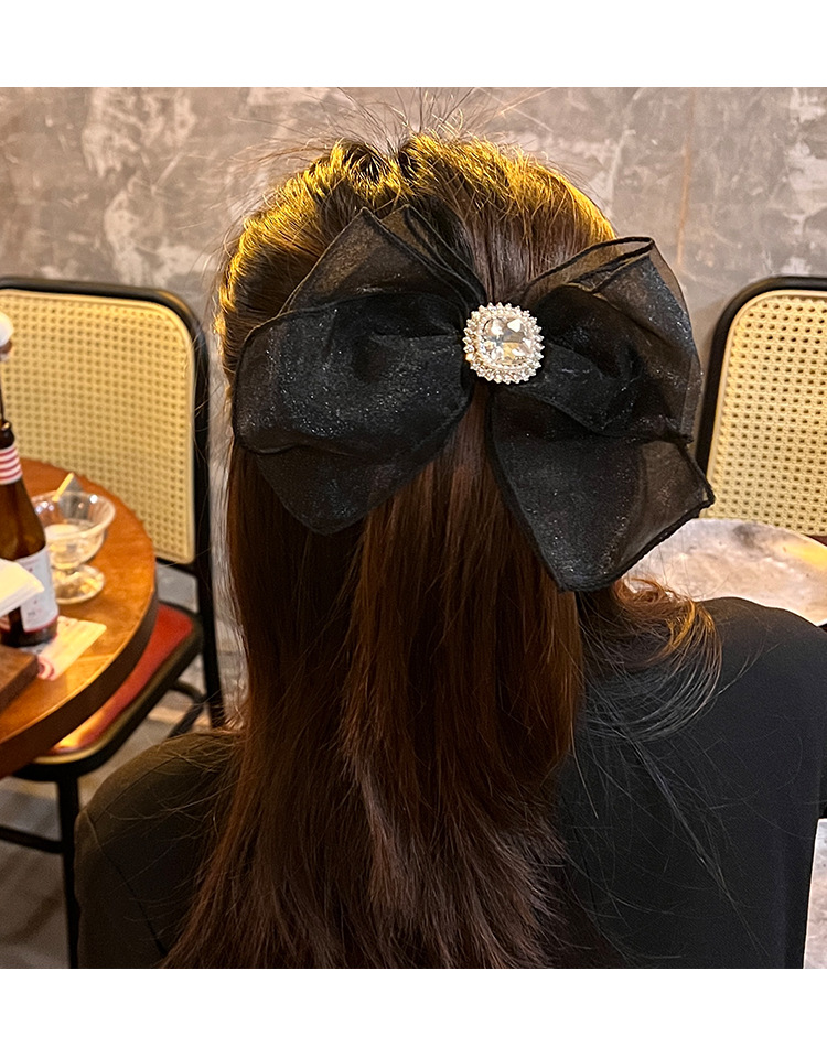 气质优雅网纱闪钻蝴蝶结发夹女后脑勺顶夹弹簧夹发卡子夹子发饰