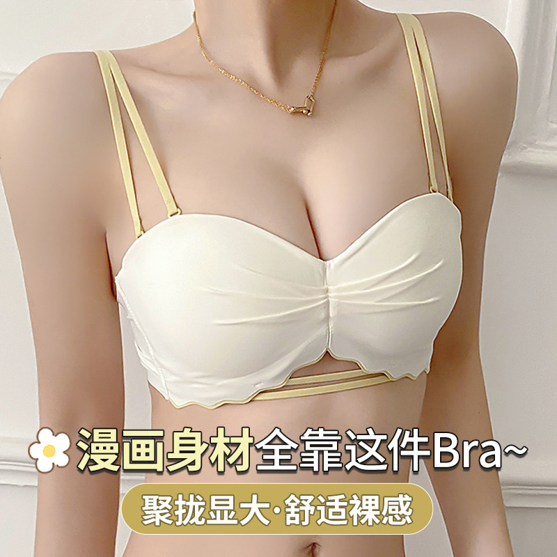 内衣女小胸聚拢显大收副乳防下垂性感无肩带防滑隐形平胸贴文胸罩