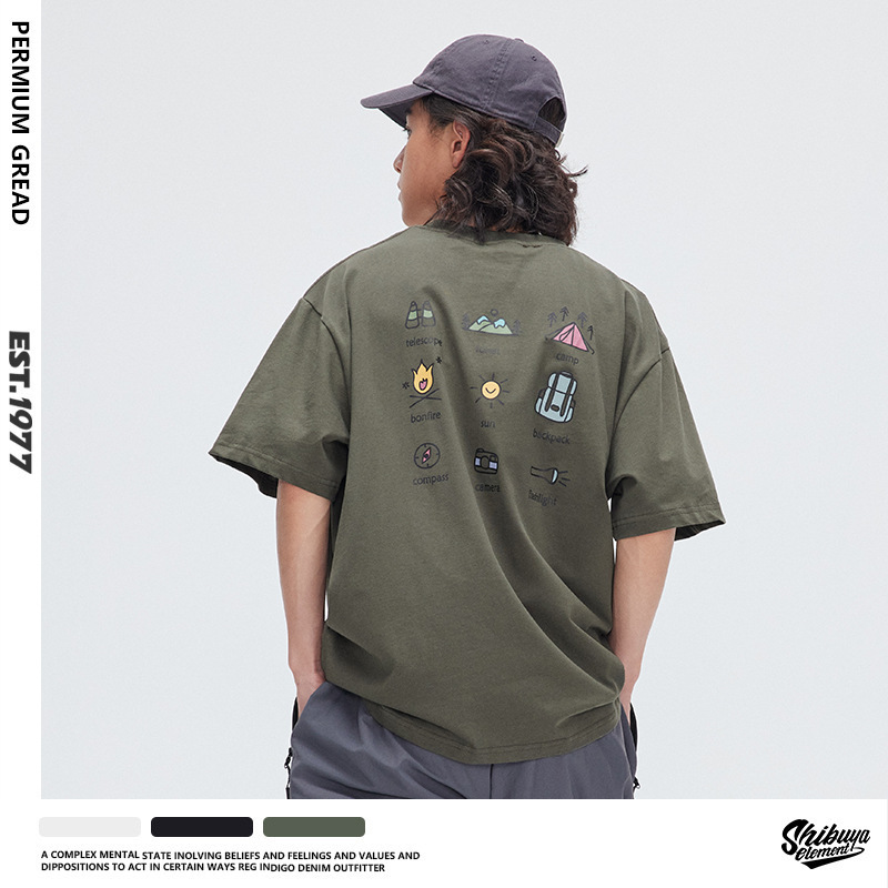 夏季复古印花设计街头短袖T恤男士潮牌宽松情侣休闲上衣体恤衫
