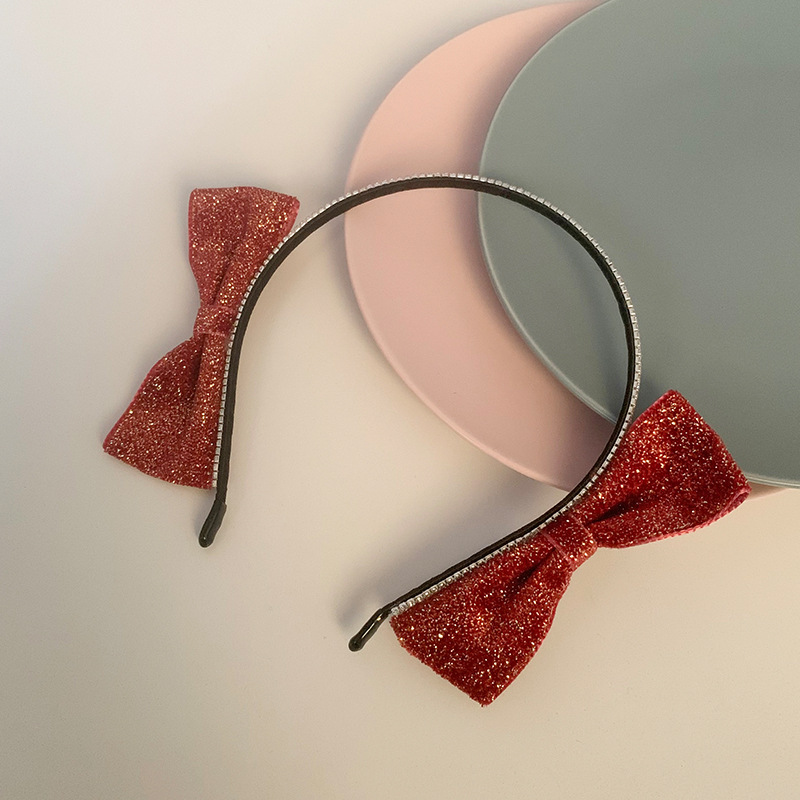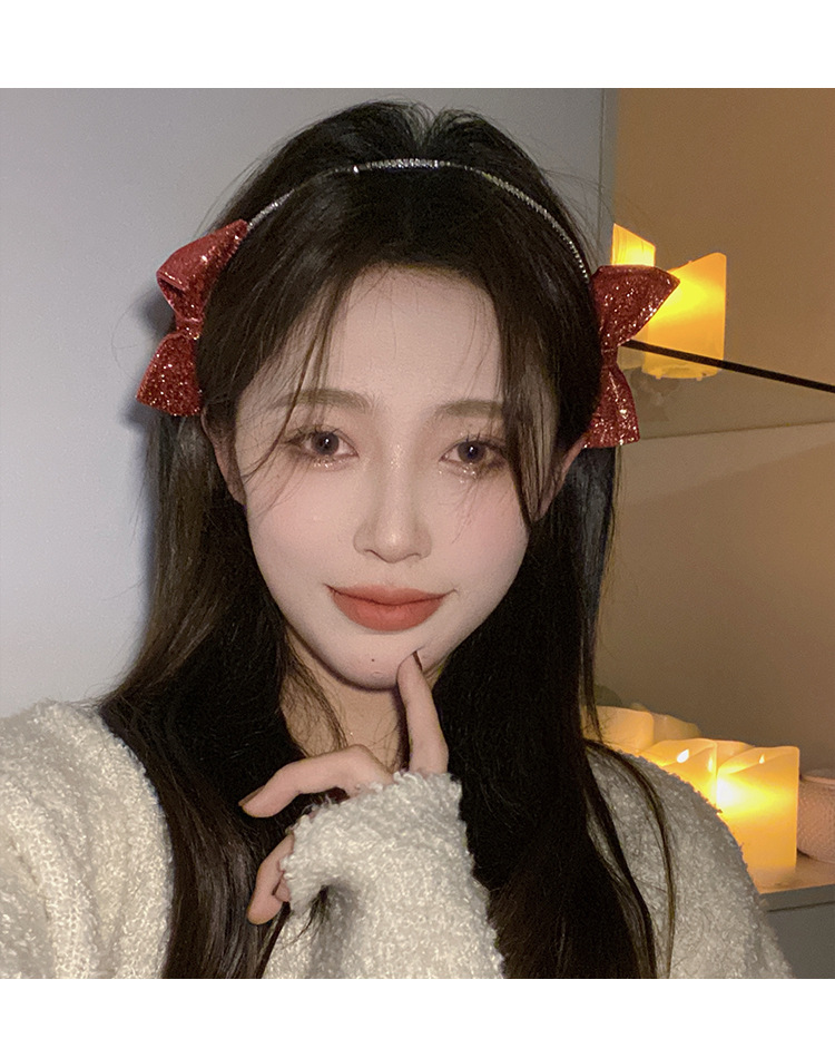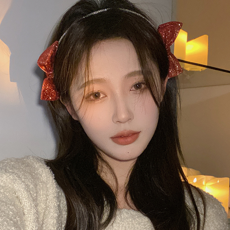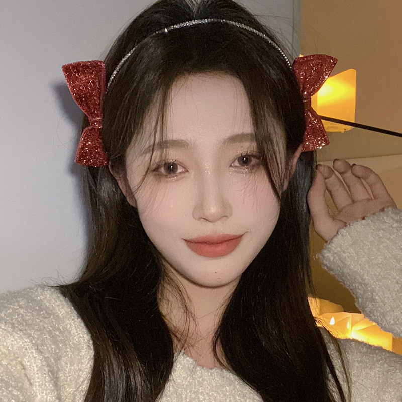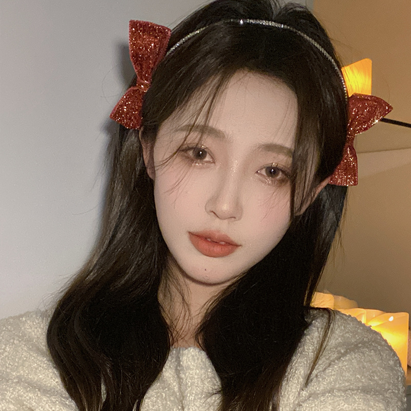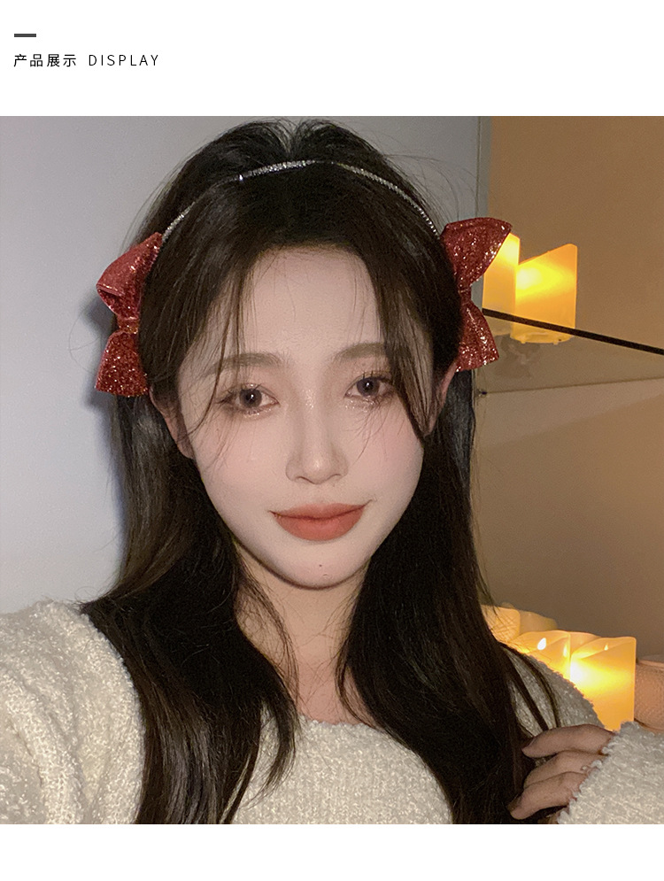 红色新年闪亮双侧边蝴蝶结发箍女chic风气质网红甜美外出百搭发饰
