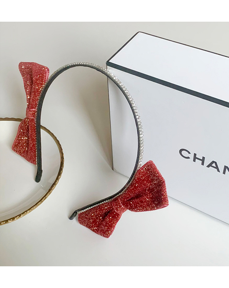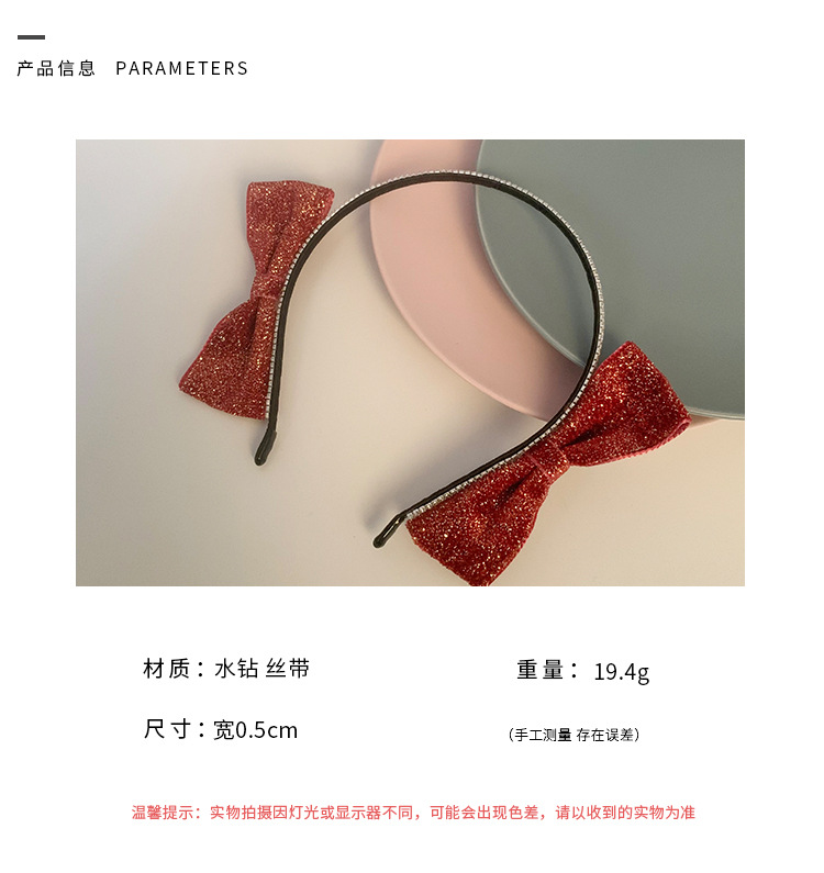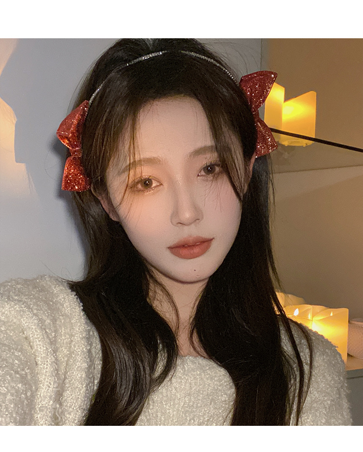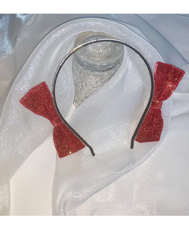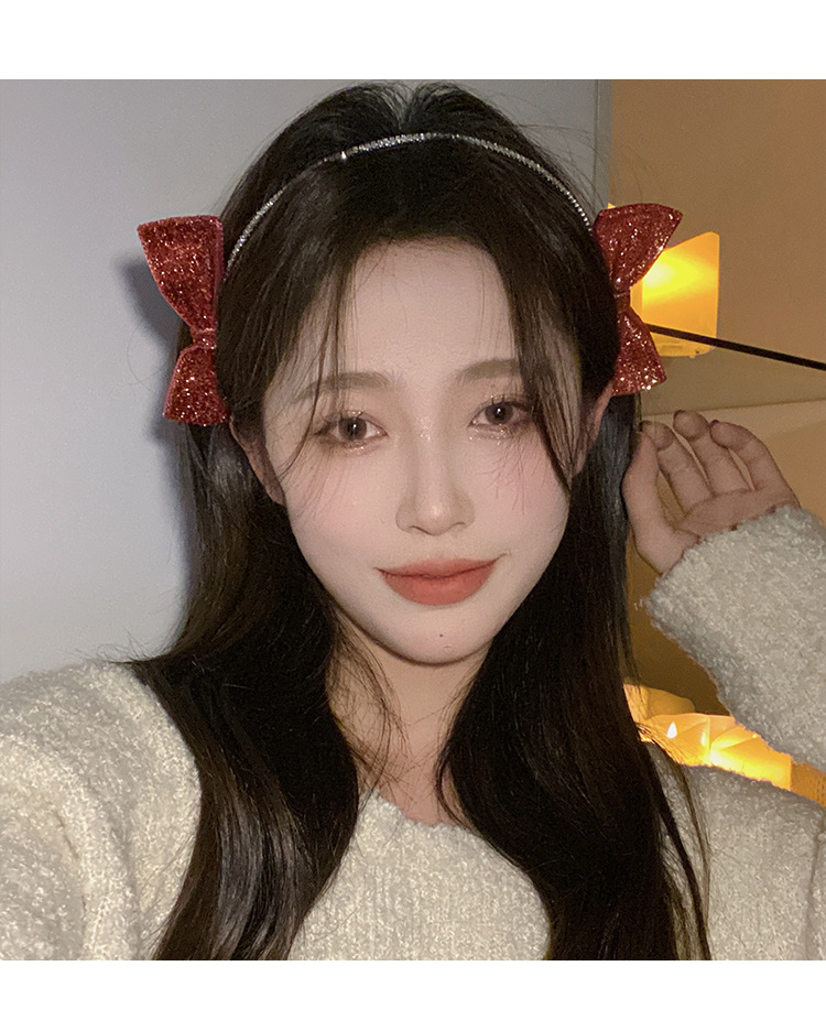 红色新年闪亮双侧边蝴蝶结发箍女chic风气质网红甜美外出百搭发饰