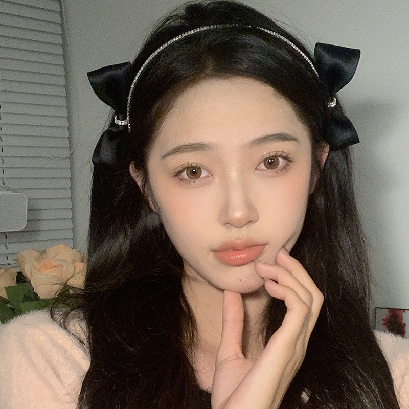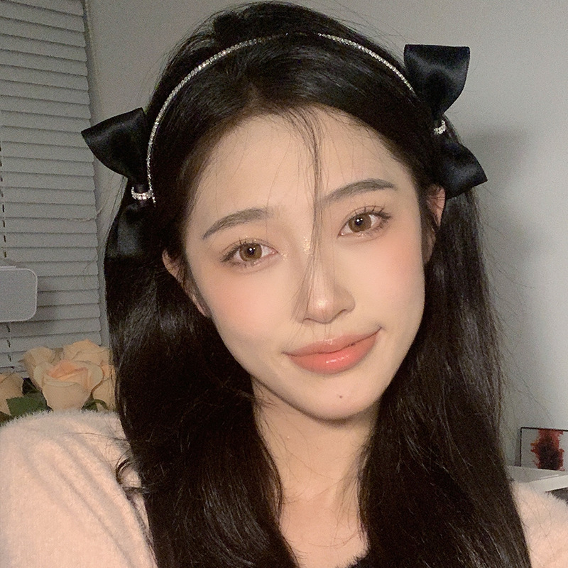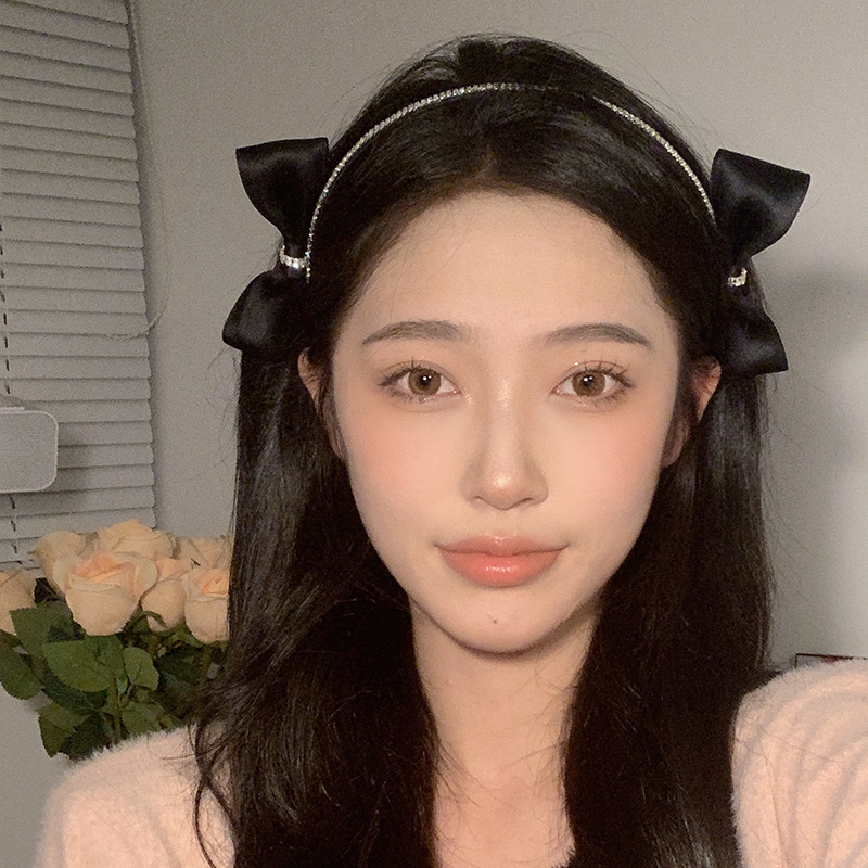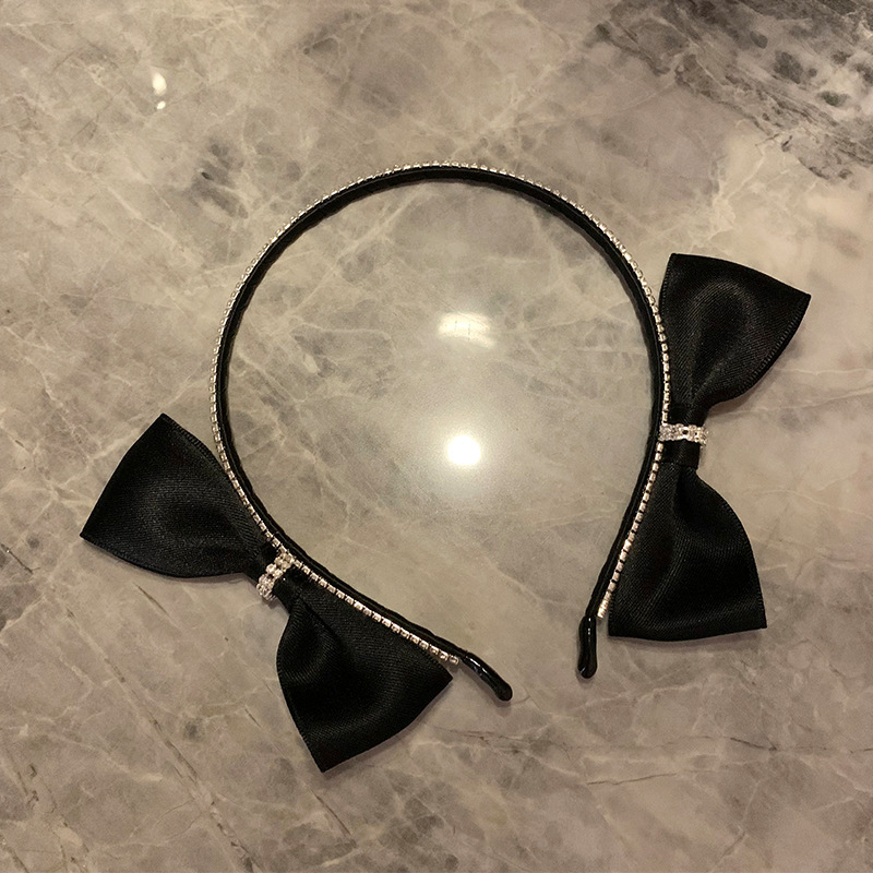 韩国水钻黑色双侧边蝴蝶结发箍女chic风气质网红甜美外出百搭发饰