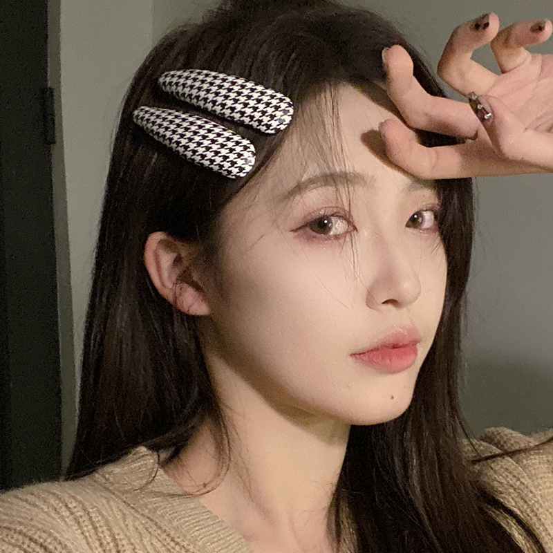 复古千鸟格发夹子侧边刘海夹bb夹顶夹后脑勺碎发饰品