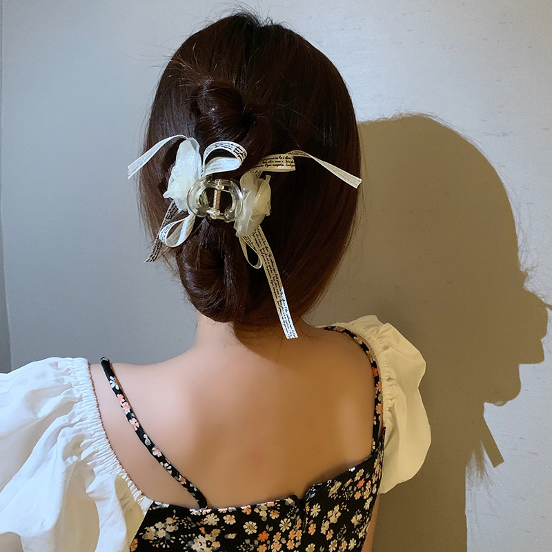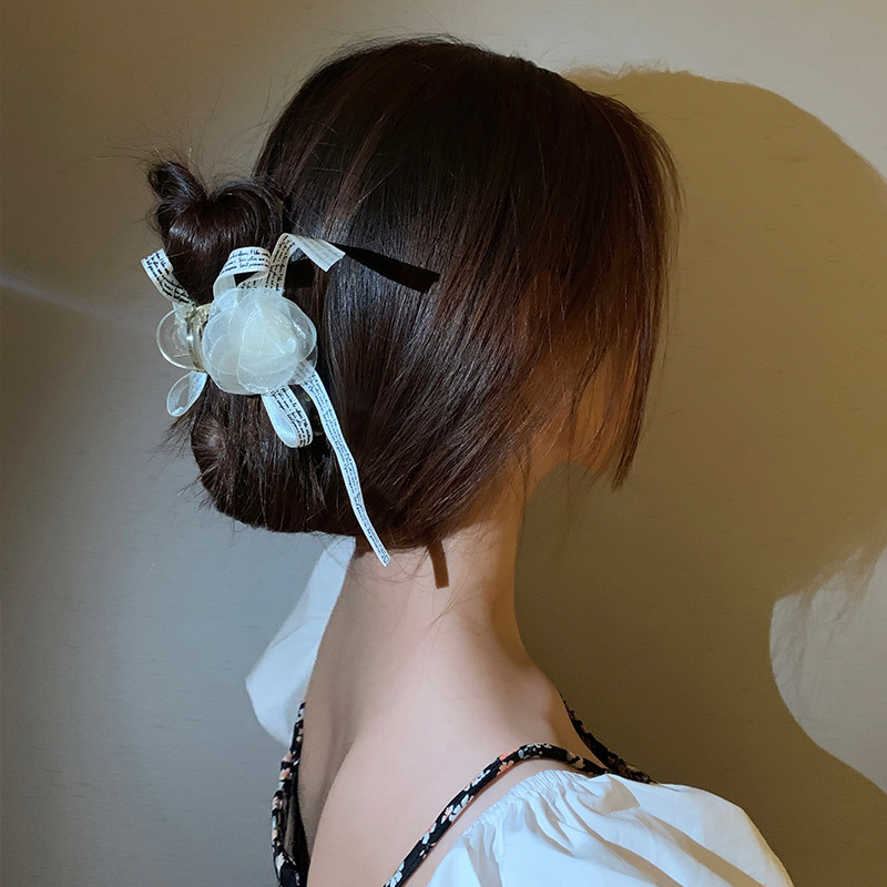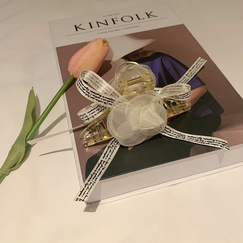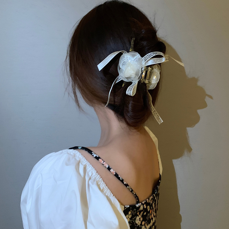 法式优雅山茶花发夹蝴蝶结后脑勺抓夹超仙发饰新款网红头饰