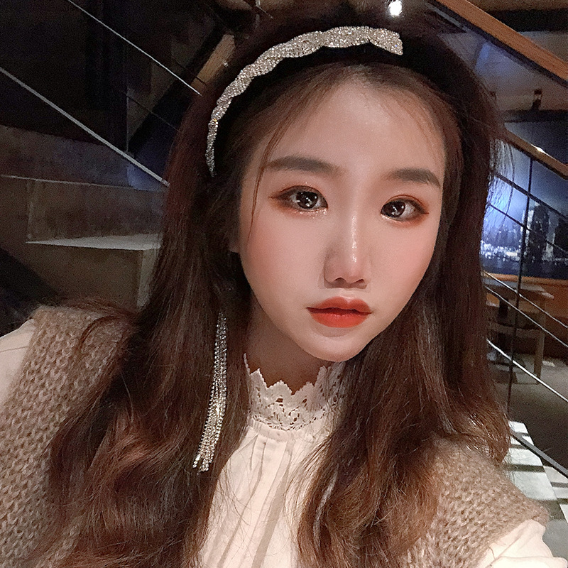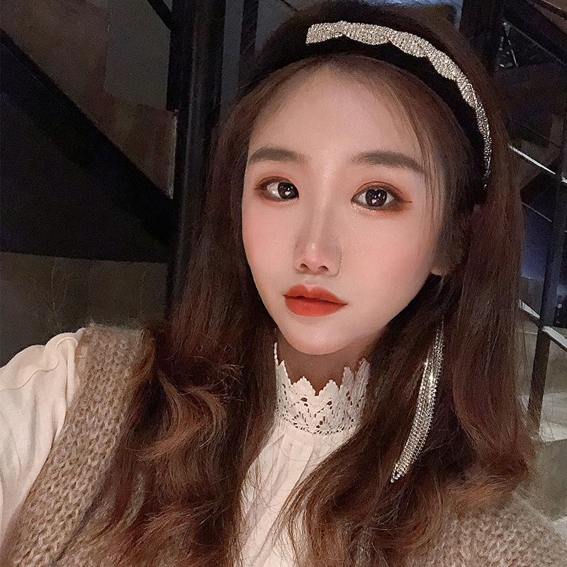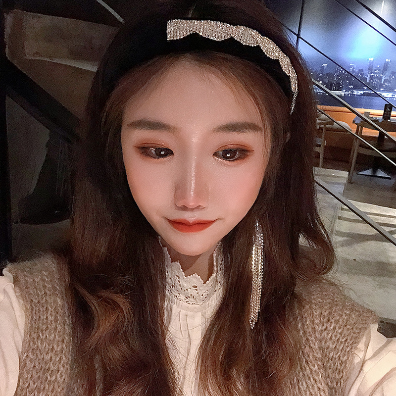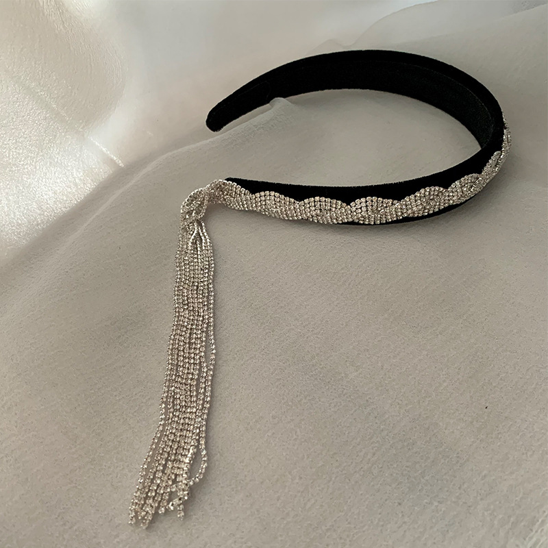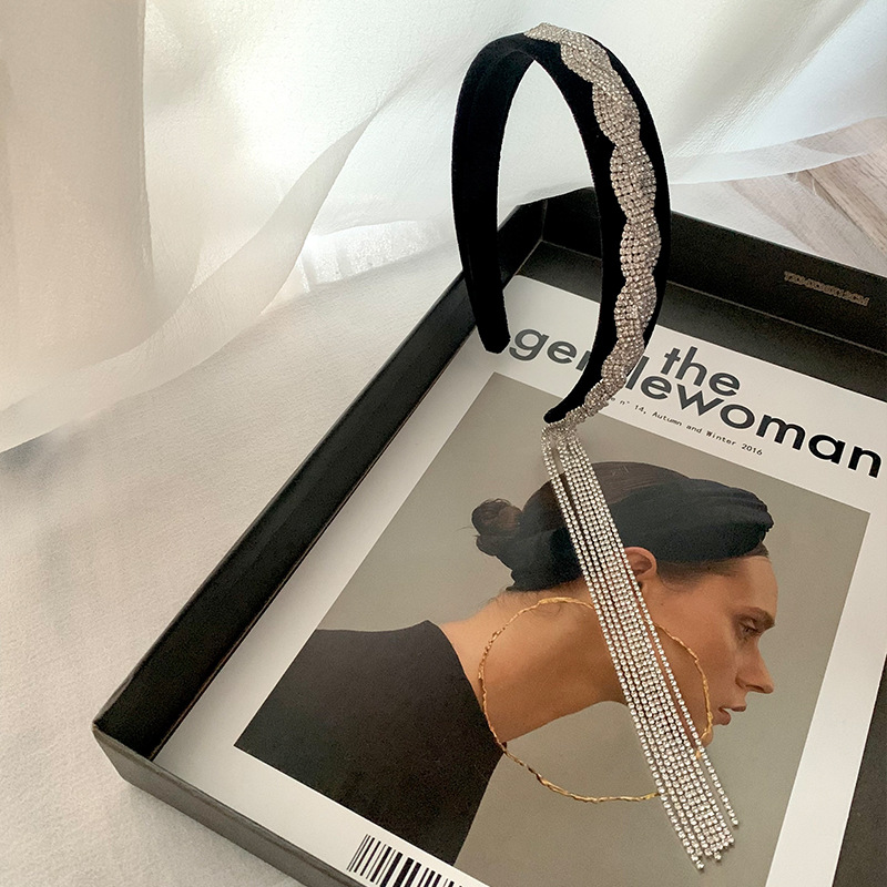 网红百搭满钻长流苏发箍女气质优雅丝绒头饰宽边外出防滑压发头箍