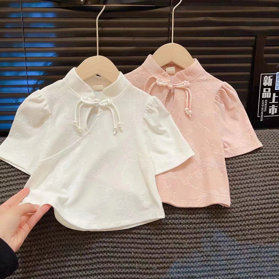 童装新中式轻国风上衣重工提花盘扣衬衫2025夏季新款中小童女童