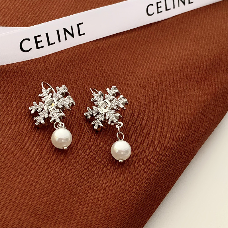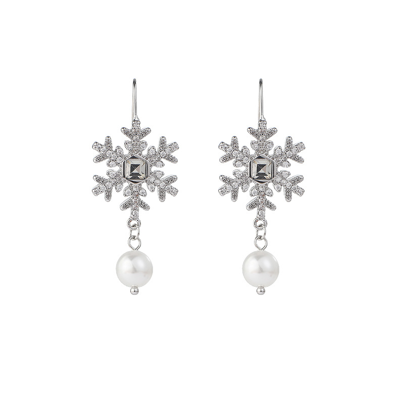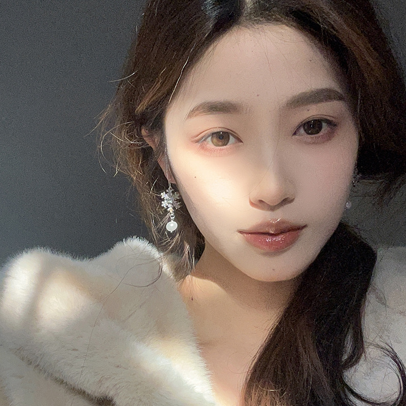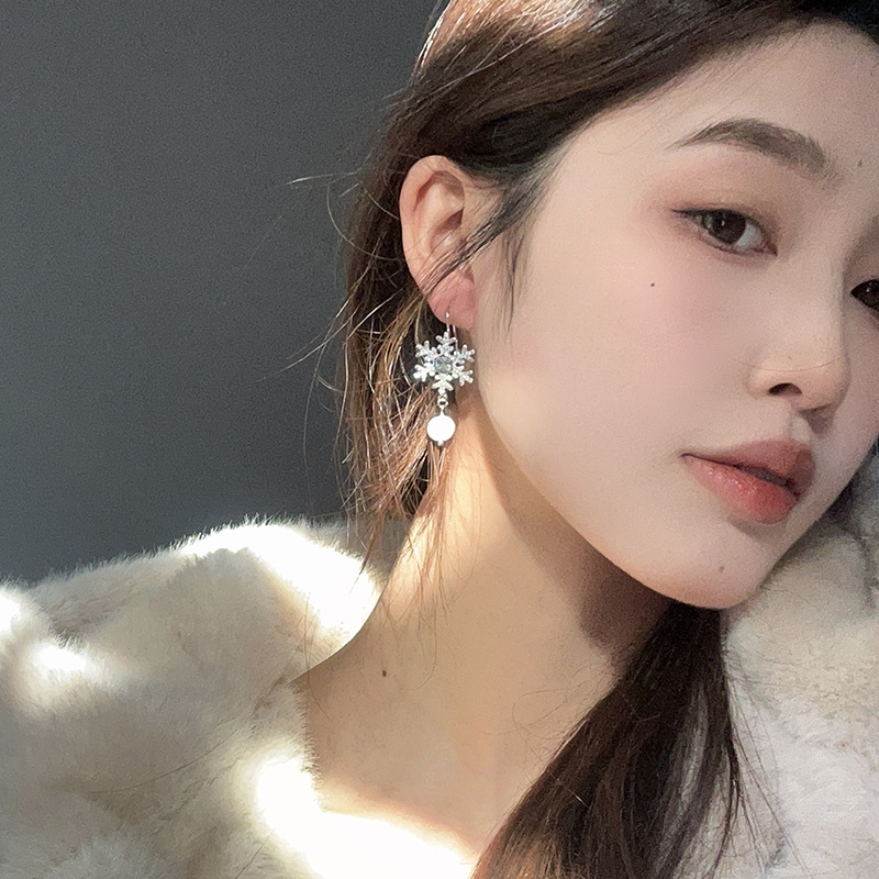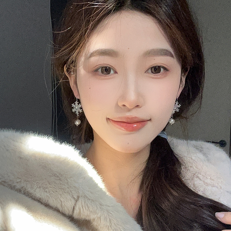 闪钻雪花珍珠耳环轻奢小众设计感高级感耳坠气质百搭过年耳饰