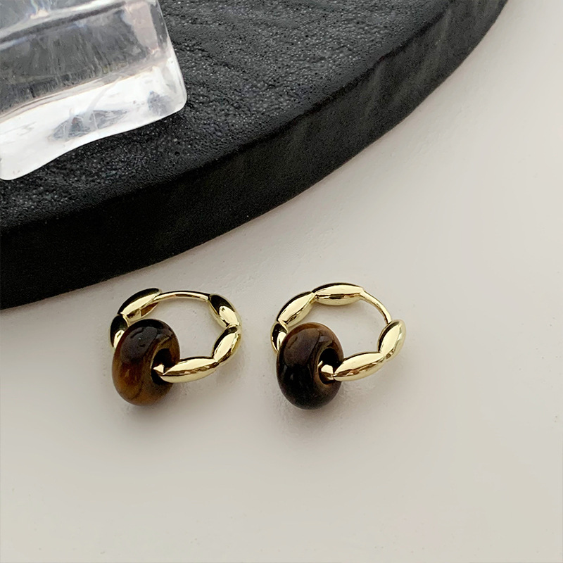 复古美拉德风虎眼石耳环小众设计感高级感耳圈年新款耳饰