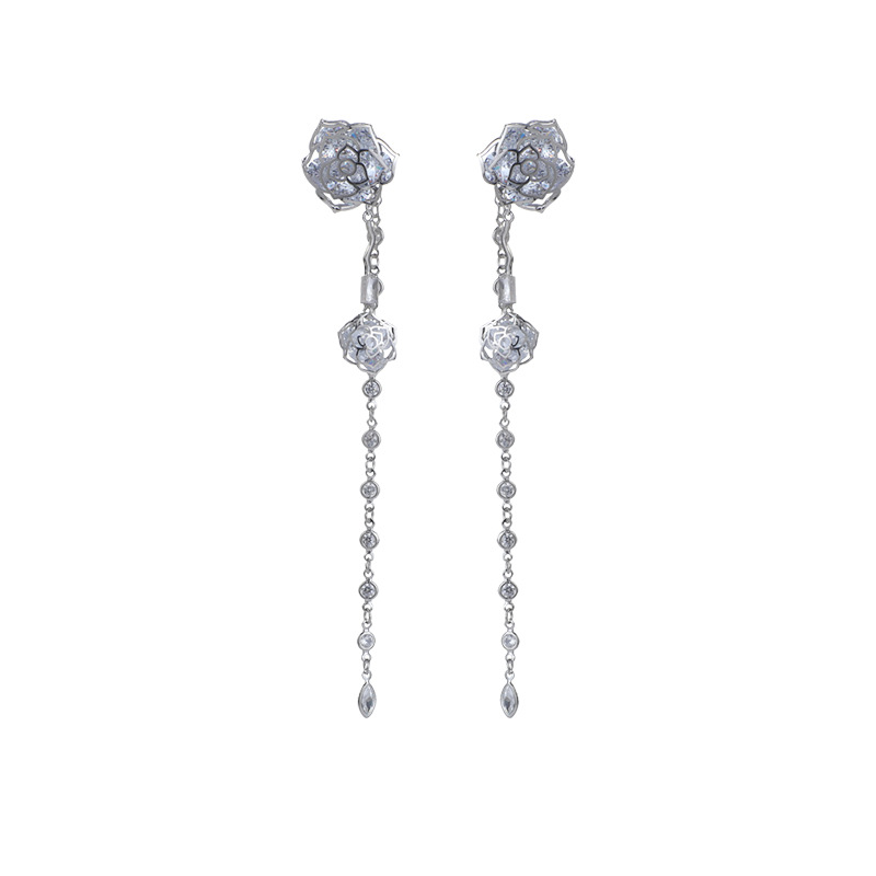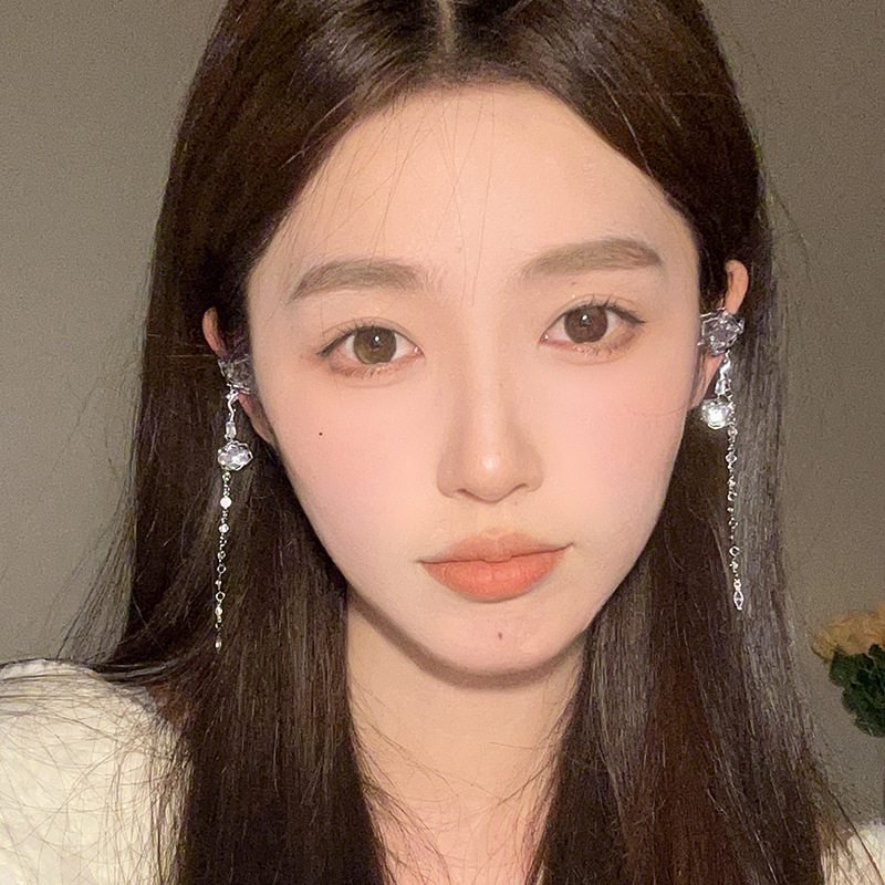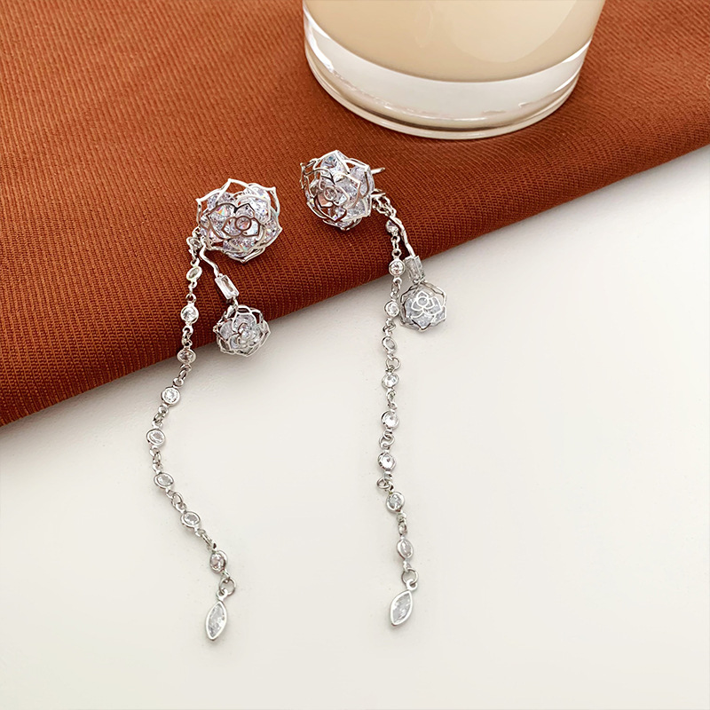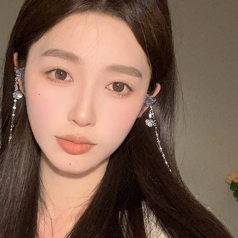 玫瑰之约~精致锆石花朵流苏耳骨夹轻奢小众高级感无耳洞耳夹耳饰