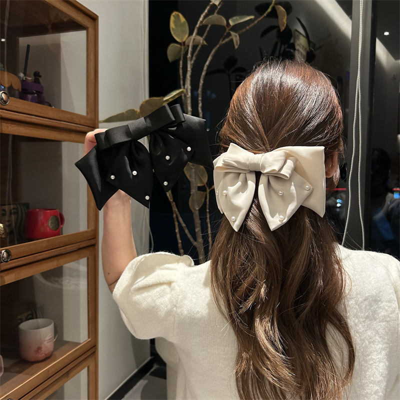 高级感缎面蝴蝶结头饰百搭弹簧夹发夹发饰简约优雅发卡顶夹女