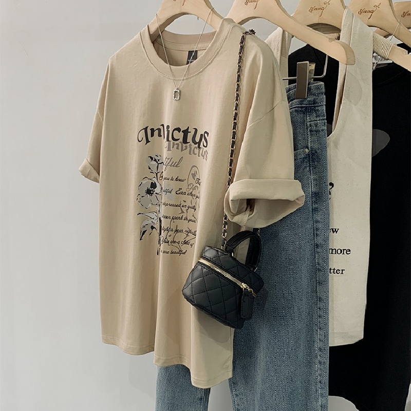 韩版大码休闲美式字母印花圆领短袖T恤女夏季新款宽松显瘦上衣潮