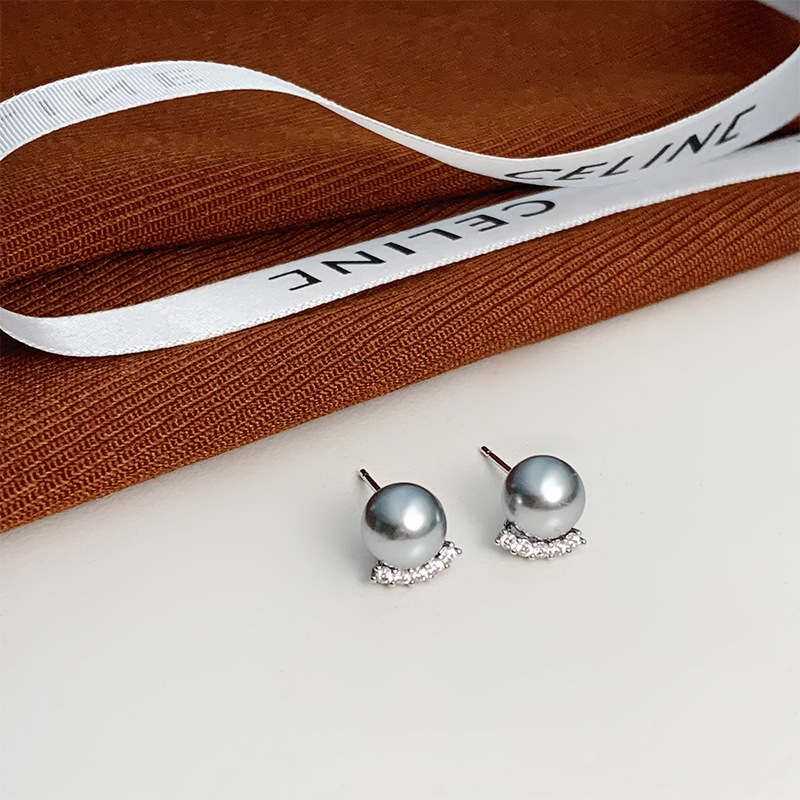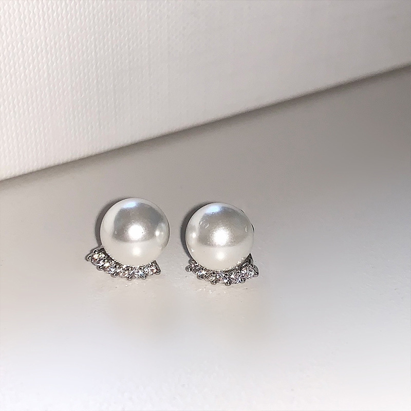 法式轻奢精致超闪锆石珍珠耳钉简约气质耳环时尚气质通勤小耳饰女