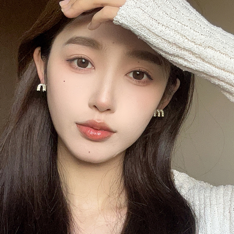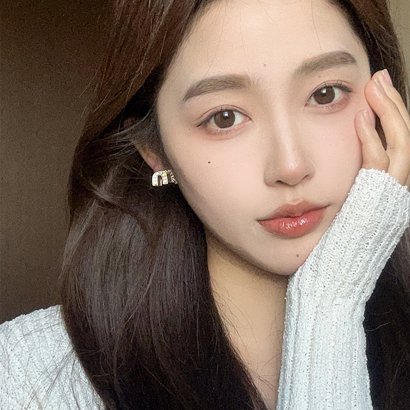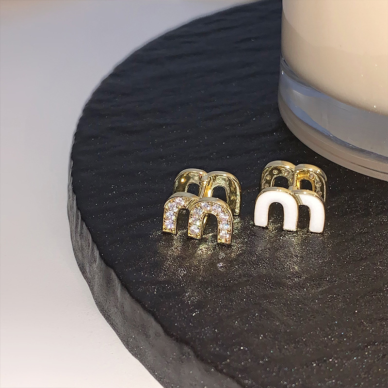 双面锆石字母M耳环小众设计感气质耳扣年新款精致小巧耳饰潮