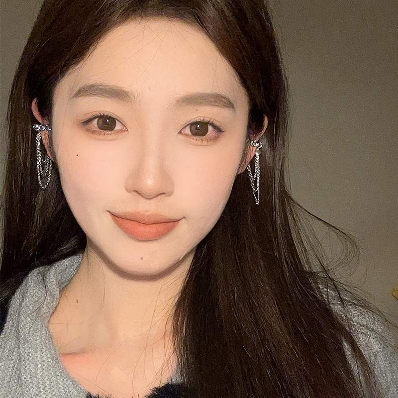 简约气质锆石数字1314流苏耳骨夹女无耳洞耳夹小众设计高级感耳饰