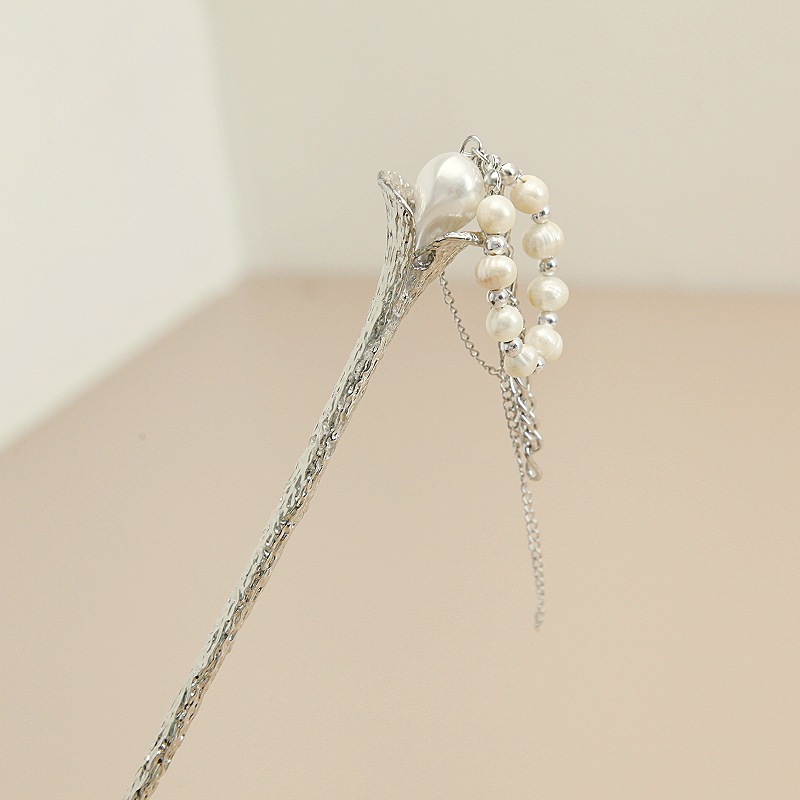 设计感古风盘发金属银色珍珠流苏发簪冷淡风小众高级发簪子女发饰
