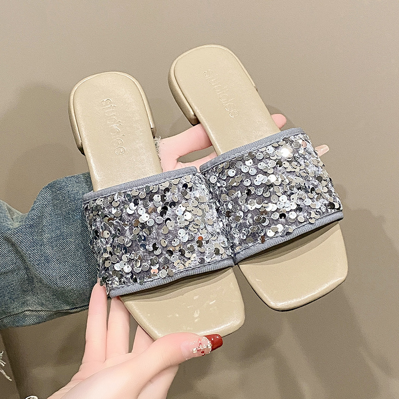 平底银色亮片一字拖鞋女鞋子外穿新款夏季时尚法式小凉拖凉鞋