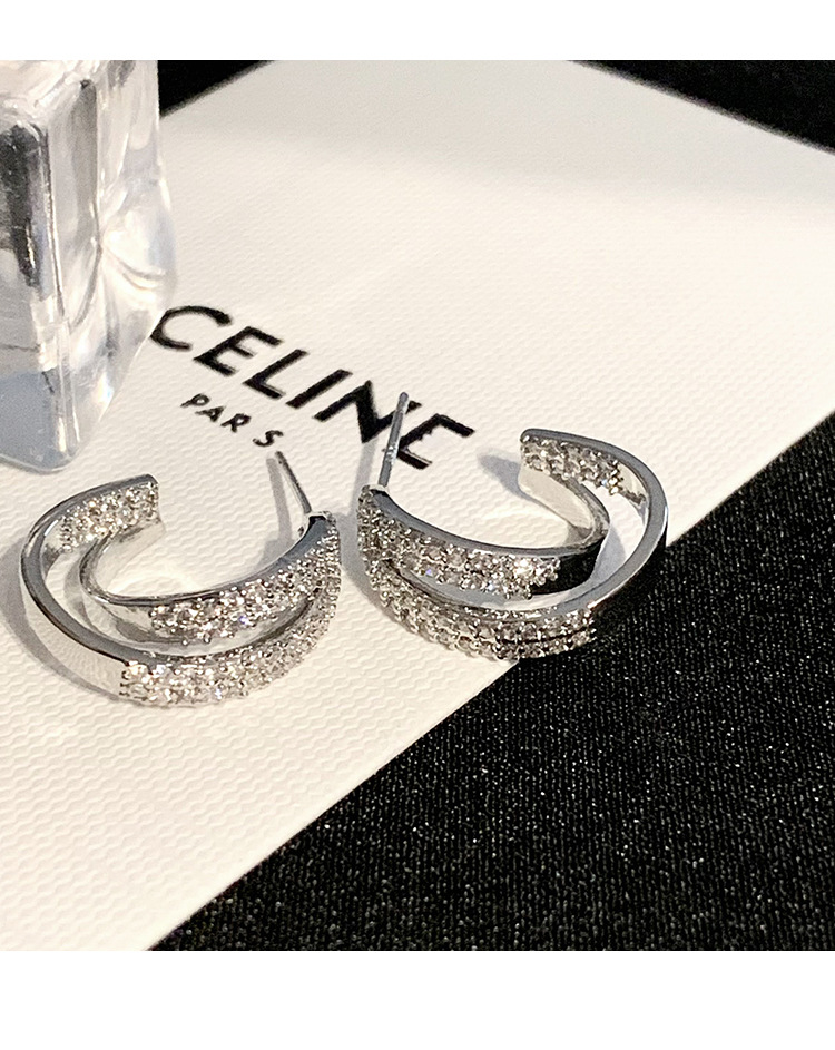 小众设计感镶钻双层交叉锆石耳钉气质轻奢高级感耳环简约百搭耳饰