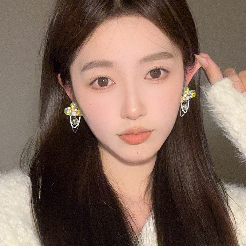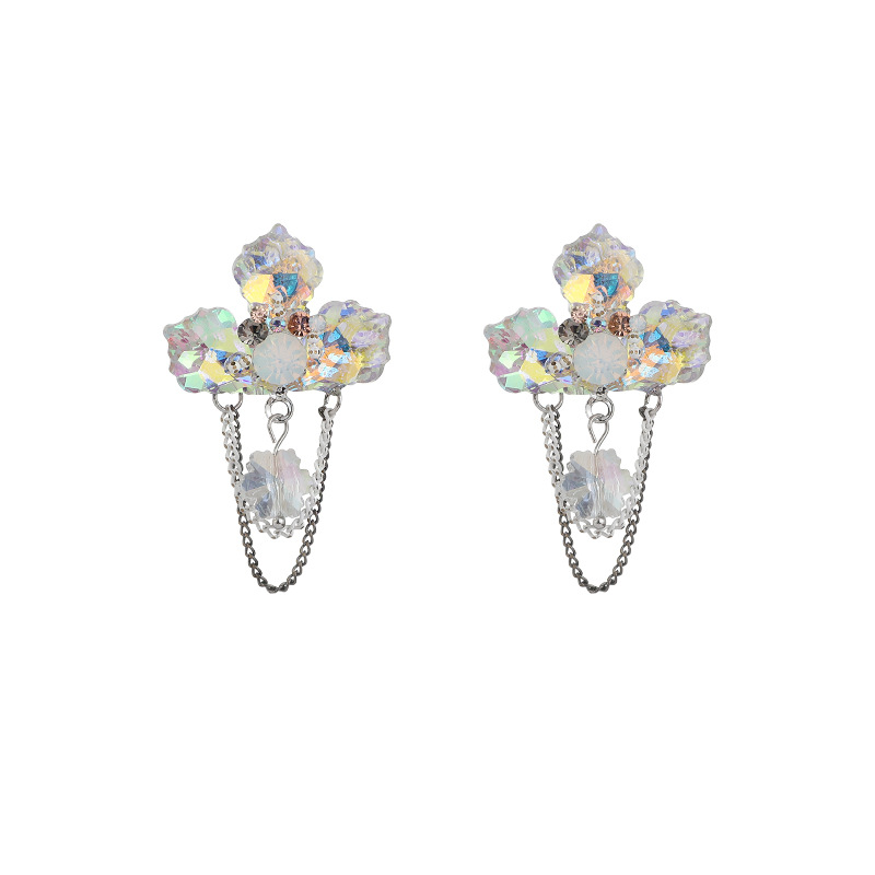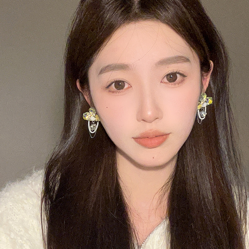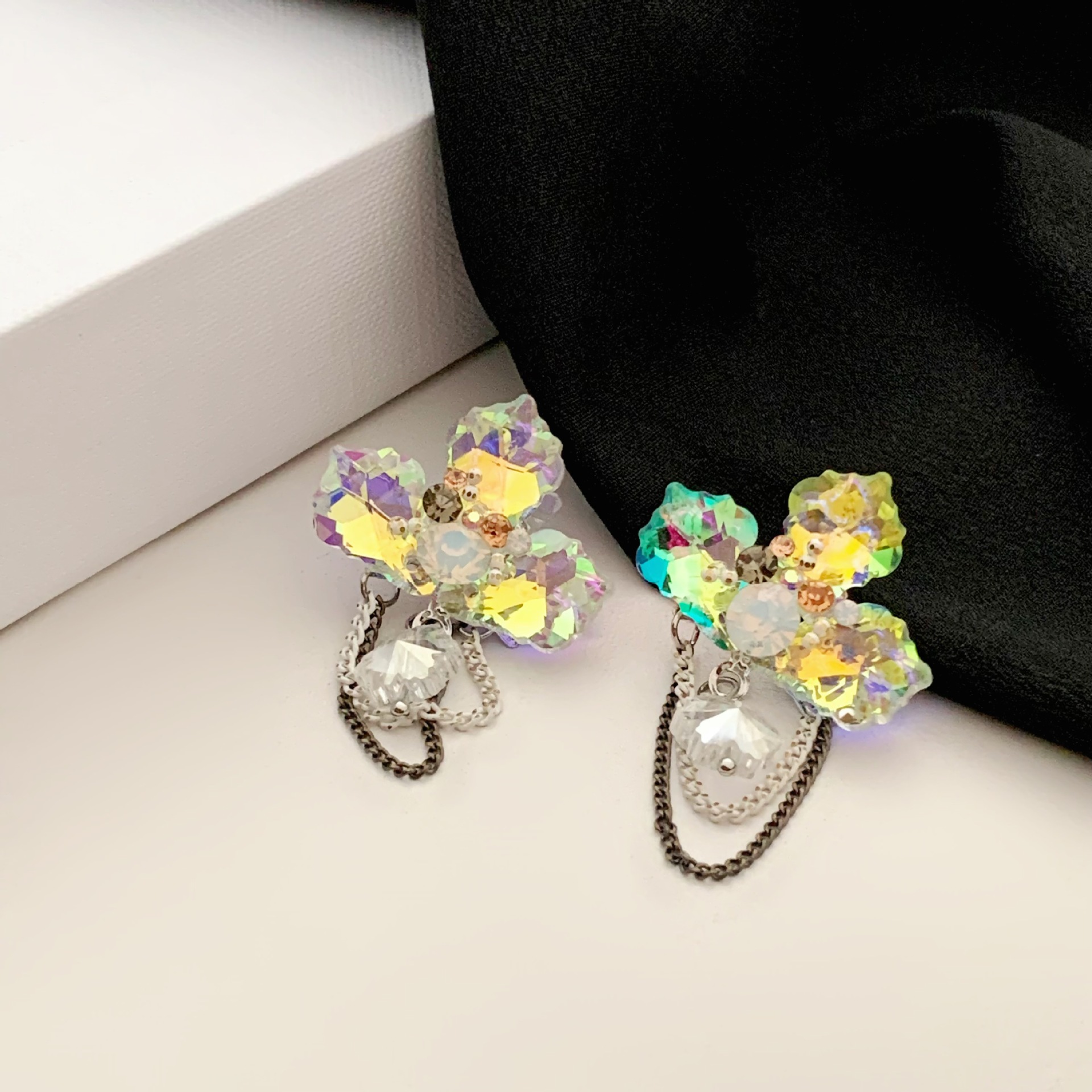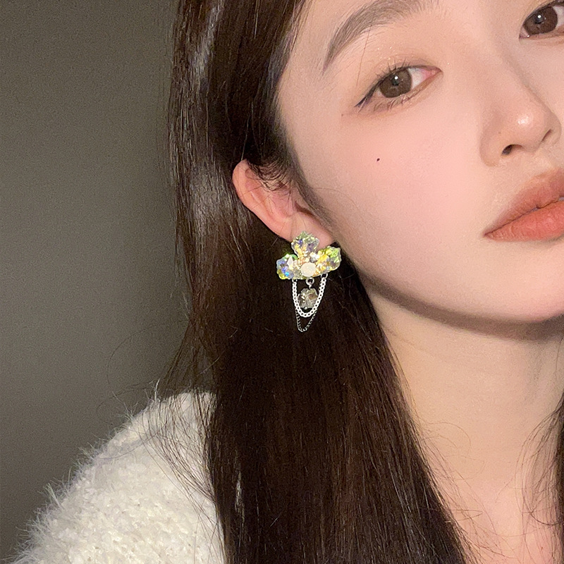 气质夸张幻彩水晶花朵耳环小众设计感冷淡风链条流苏耳坠新款耳饰
