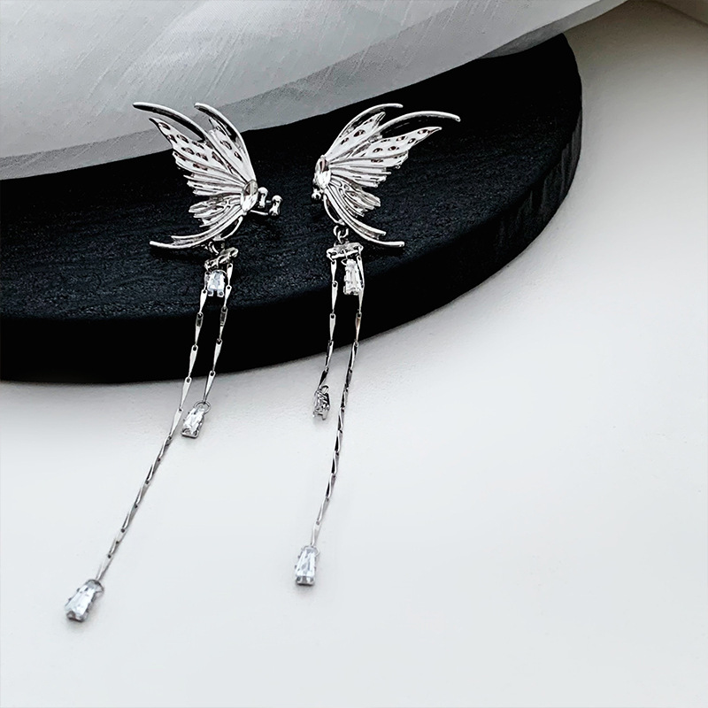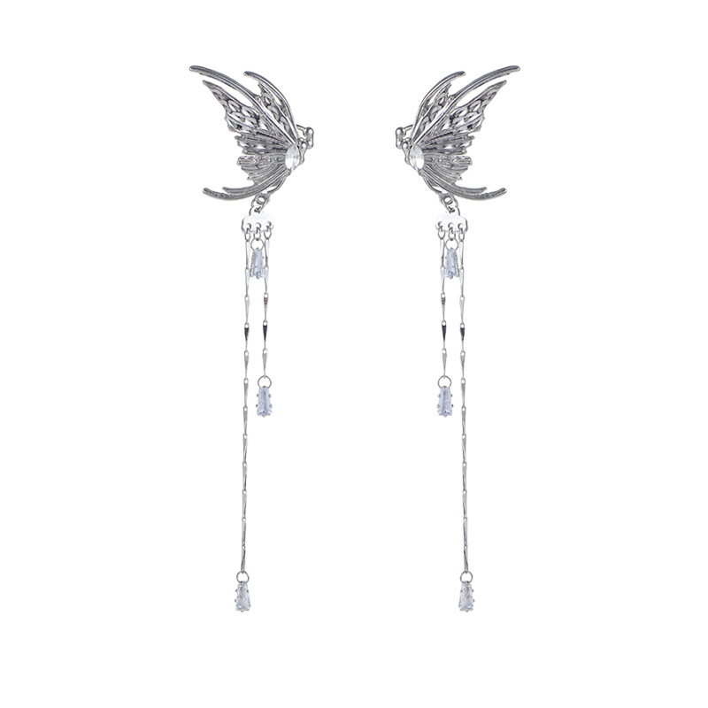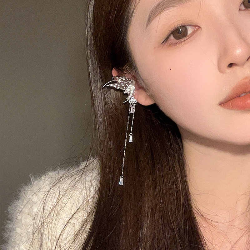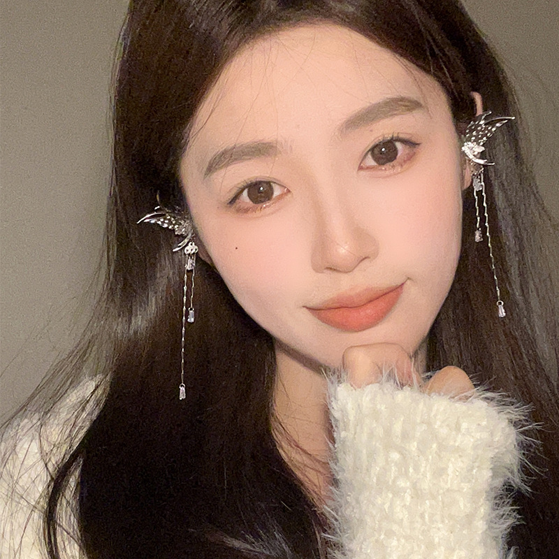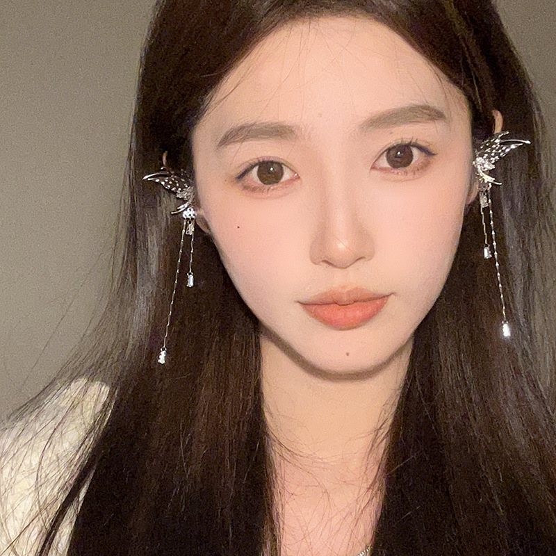 金属镶钻蝴蝶流苏精灵耳耳骨夹小众设计感长款流苏无耳洞耳夹耳饰
