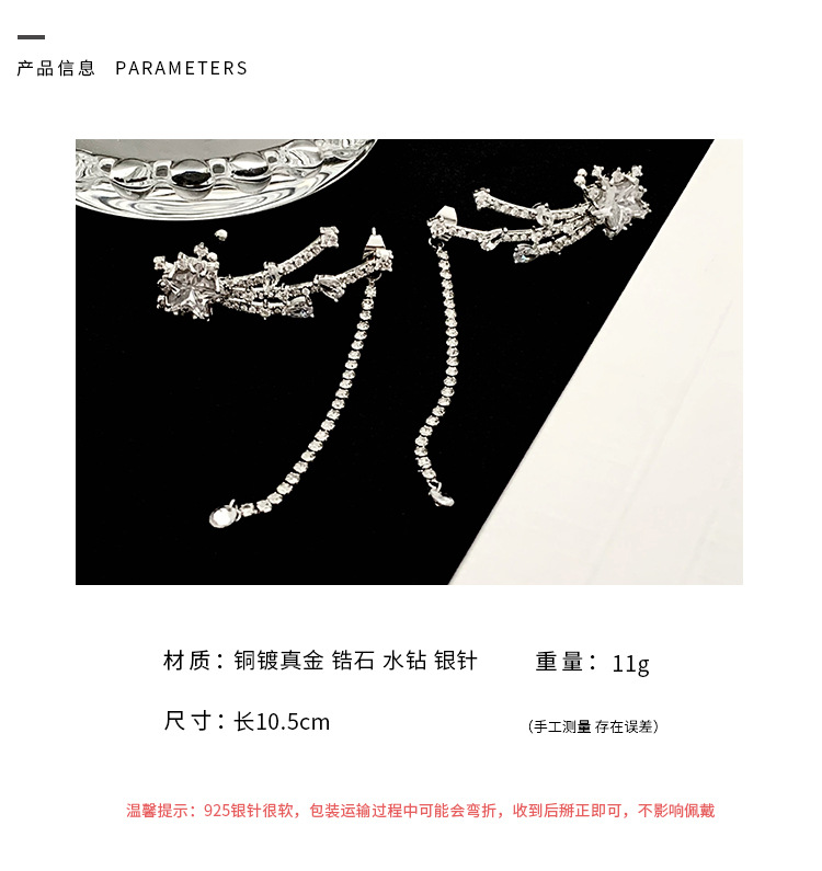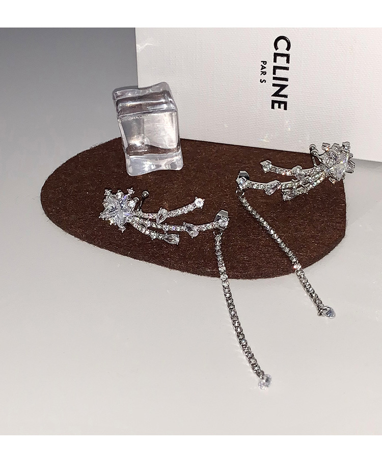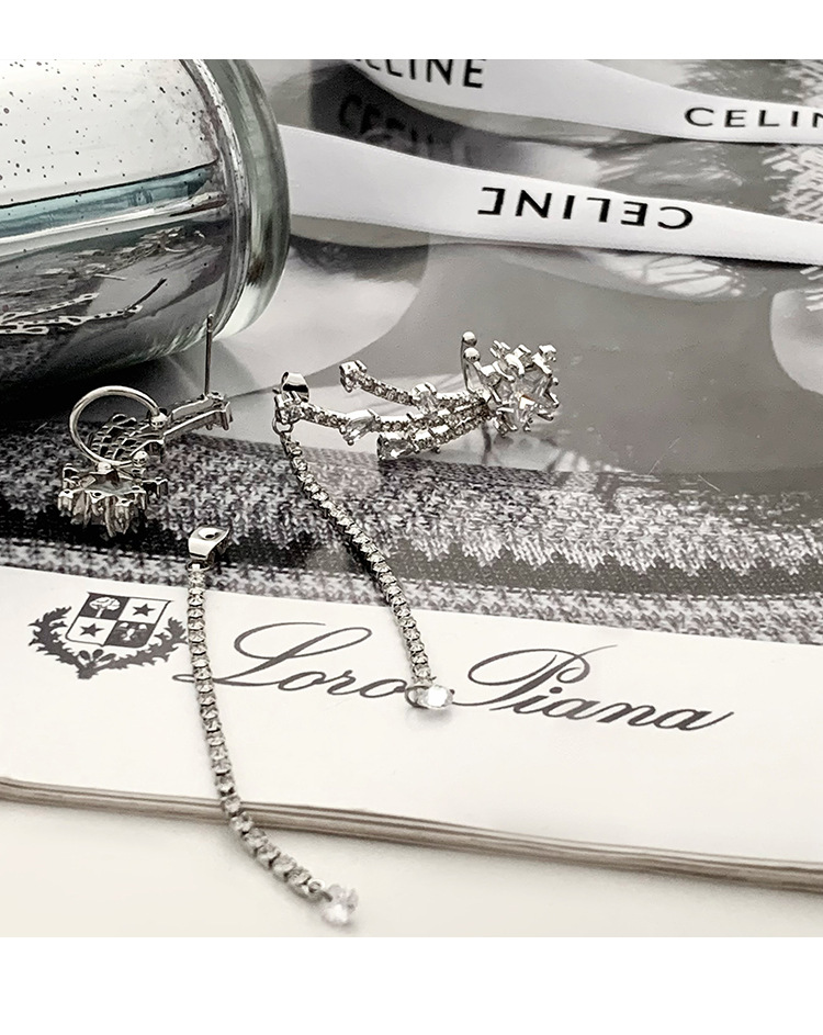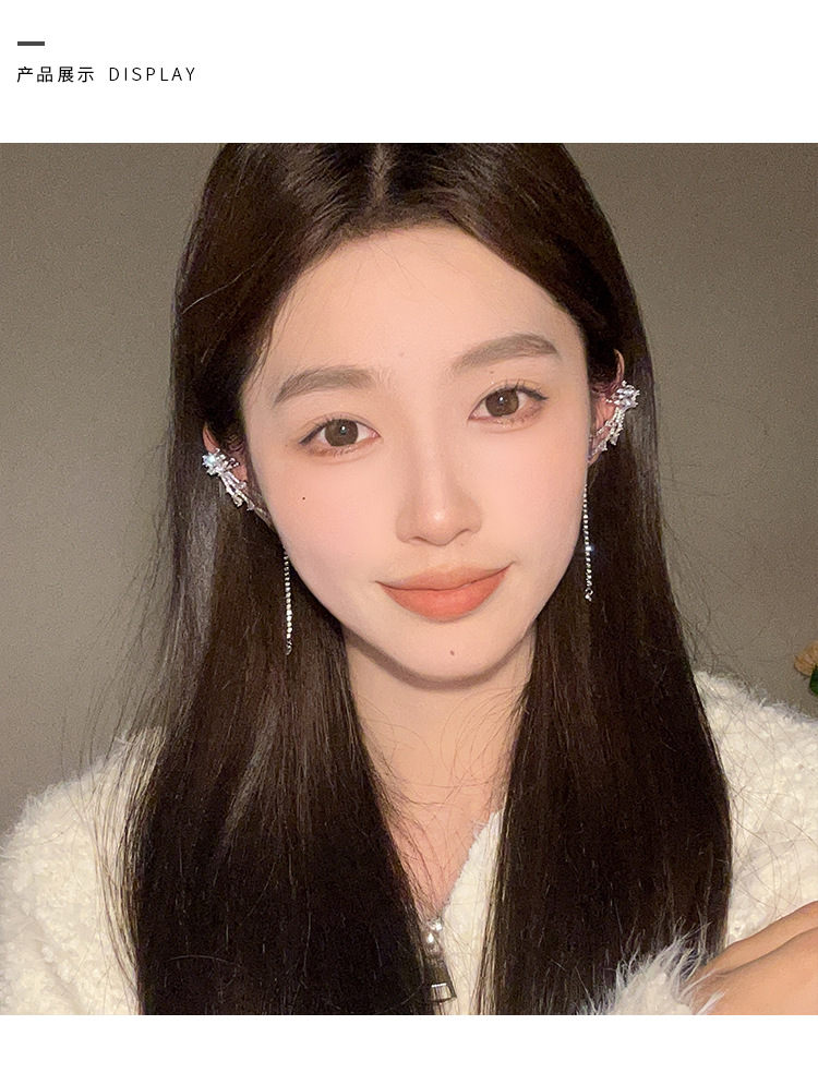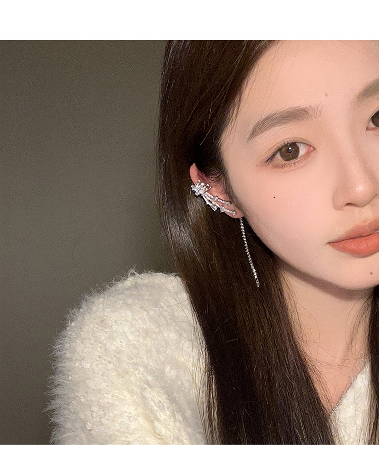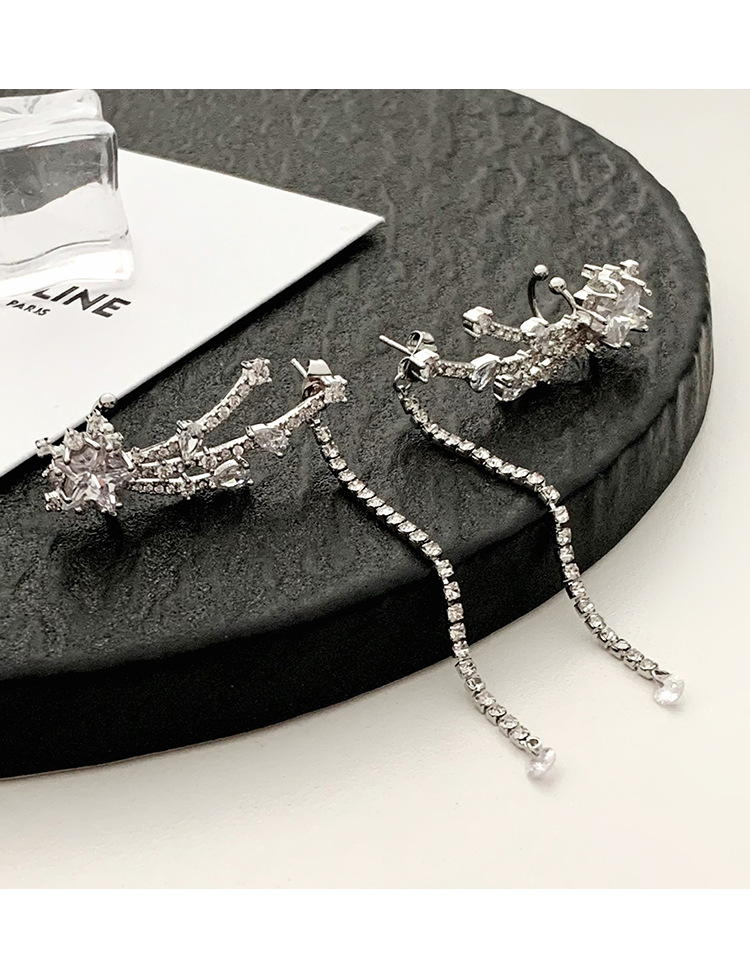 灿若星河闪闪锆石星星流苏耳环气质小众长款耳钉耳骨夹一体式耳饰
