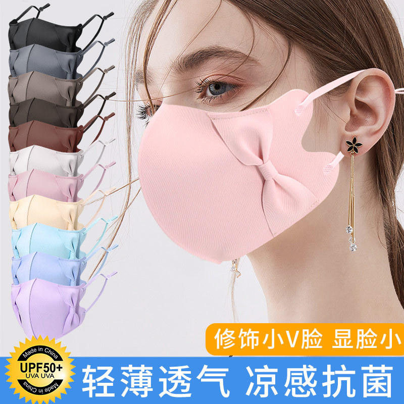 冰丝口罩薄款可水洗调节凉感透气立体蝴蝶结布口罩 防晒