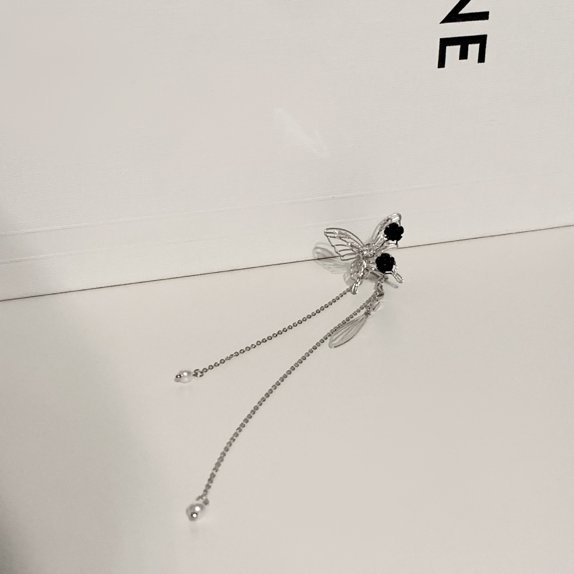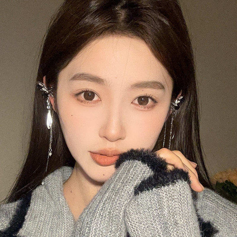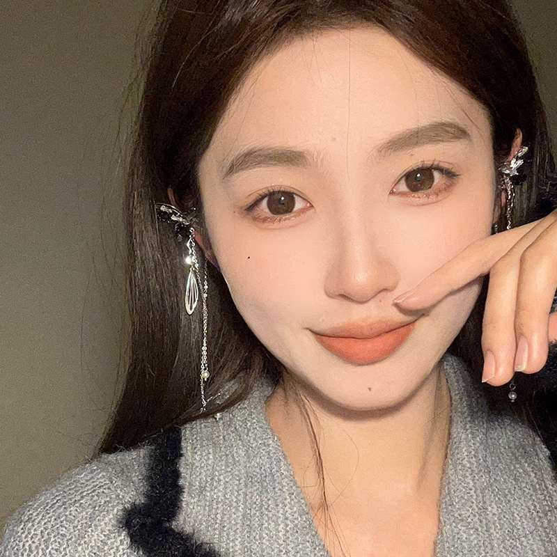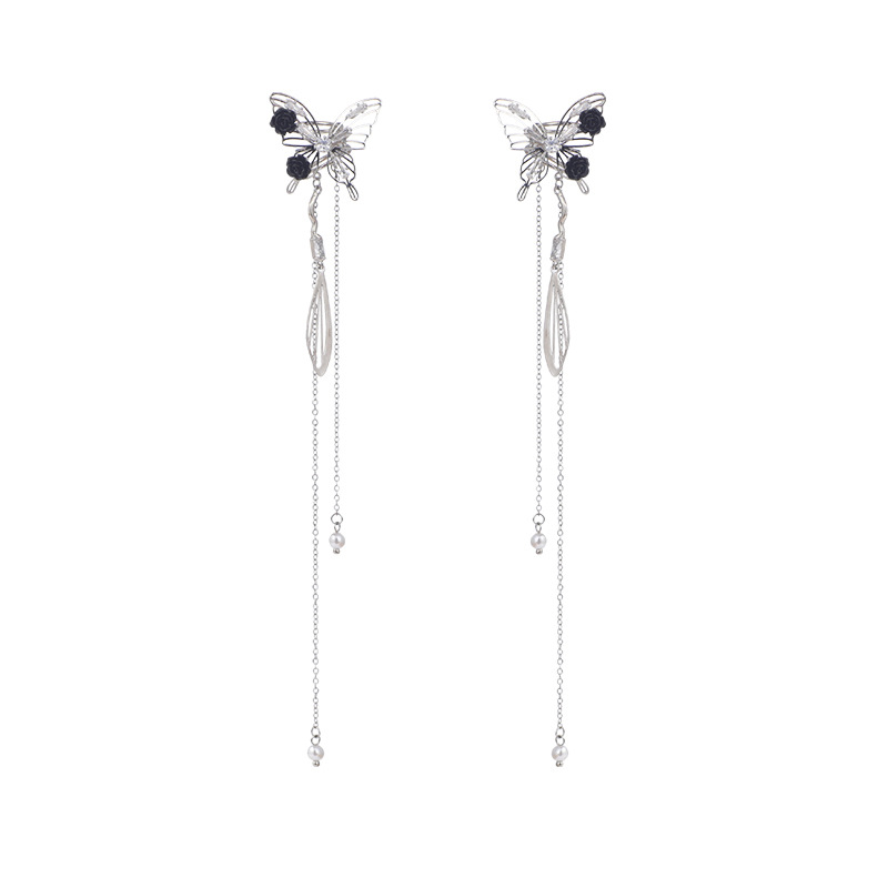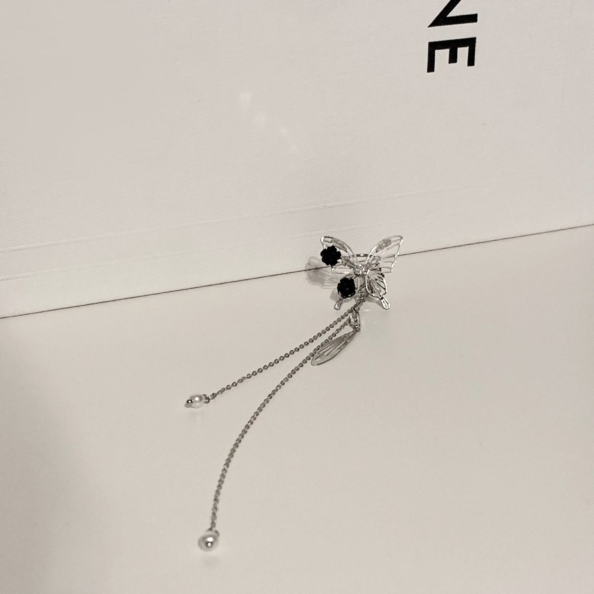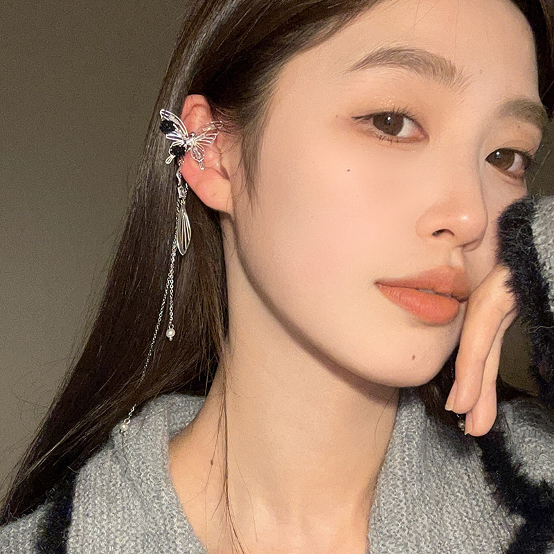 暗夜玫瑰蝴蝶流苏耳骨夹女小众设计感甜酷辣妹精灵耳夹无耳洞耳饰