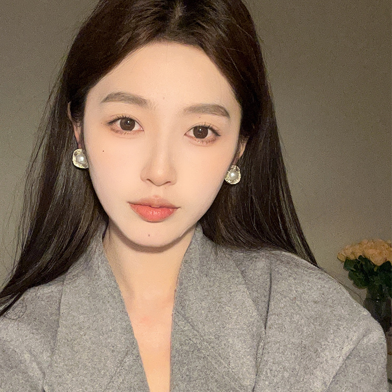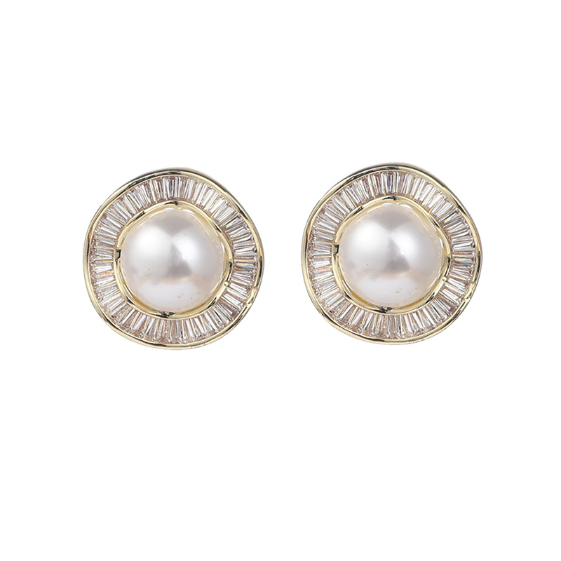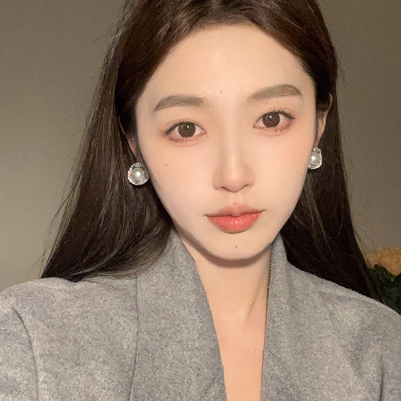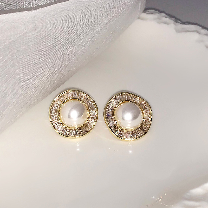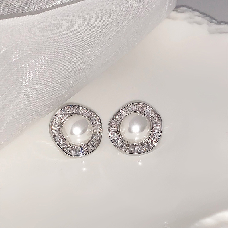 高级感气质复古珍珠耳环小众设计感轻奢满锆花边耳钉秋冬新款耳饰