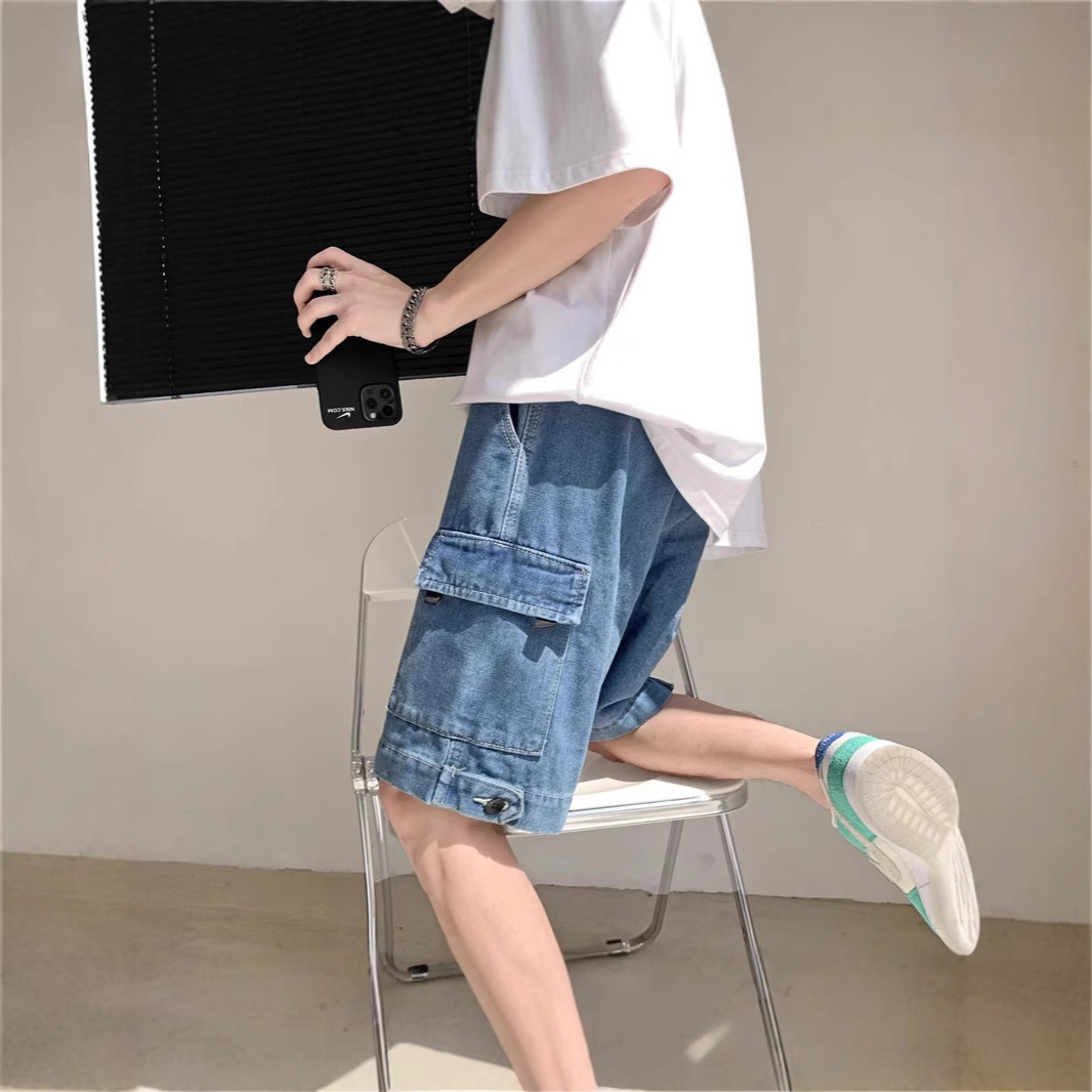 牛仔短裤男夏季港风宽松简约百搭工装五分裤休闲潮牌帅气直筒马裤